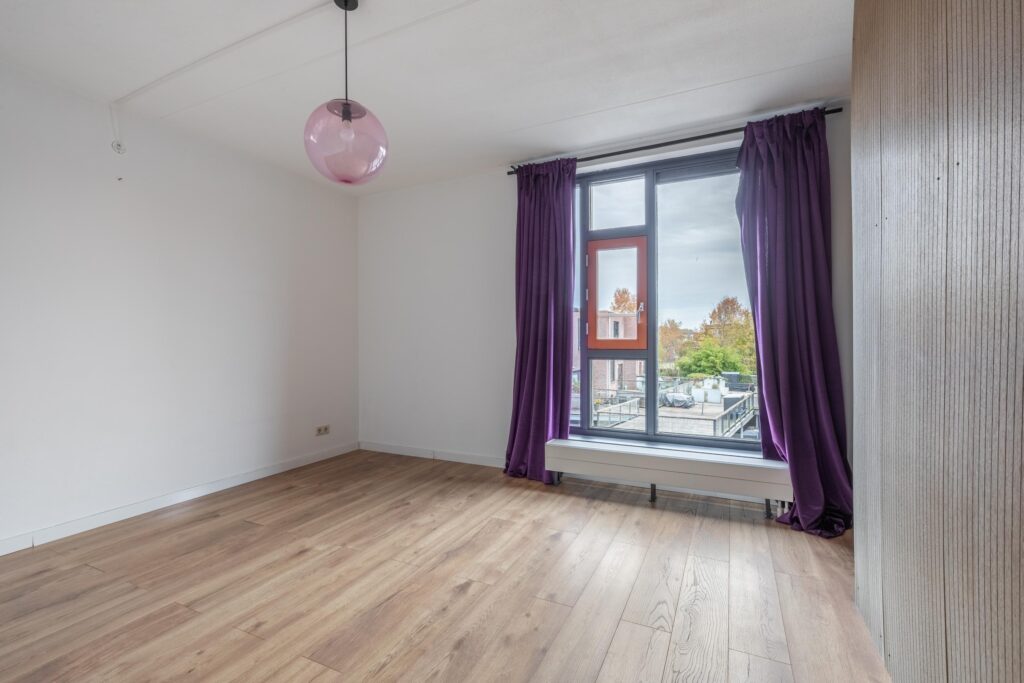 Twee slaapkamers liggen aan de achterzijde en zijn nu in gebruik als kinderkamers. De derde, zeer ruime slaapkamer ligt aan de voorzijde en is extra licht door het grote raam. Hier bevindt zich ook een riante inloopkast – ideaal voor wie van overzicht en opbergruimte houdt.