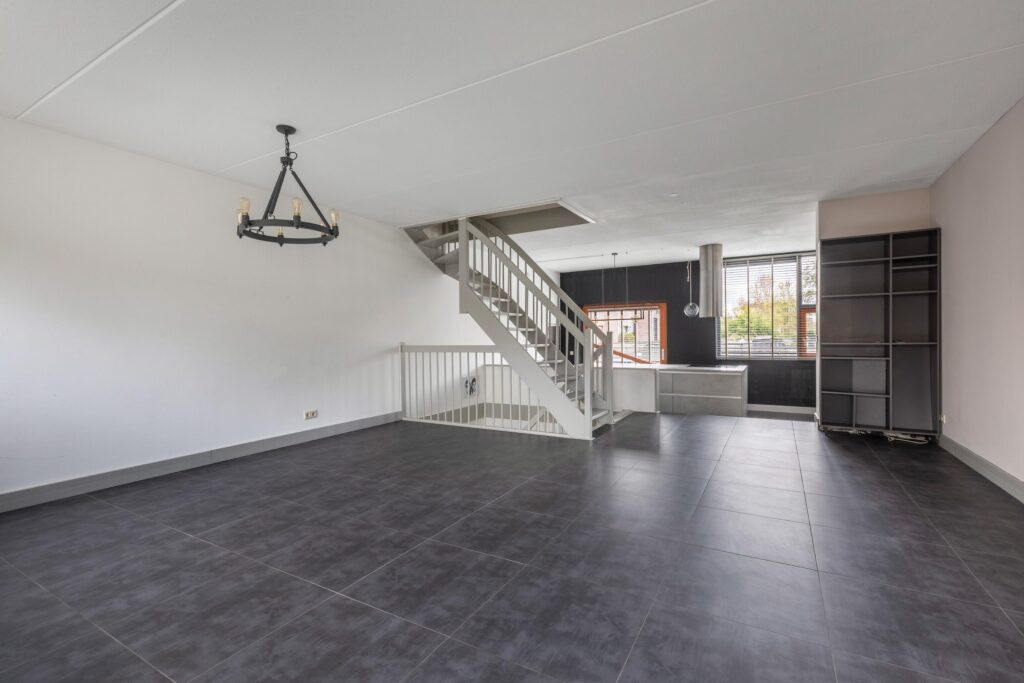 De eerste verdieping is volledig open gemaakt en ingericht als royale leefverdieping met aan de achterzijde de eetkamer en aan de voorzijde de keuken. Ideaal voor leuke momenten met familie en gezin.