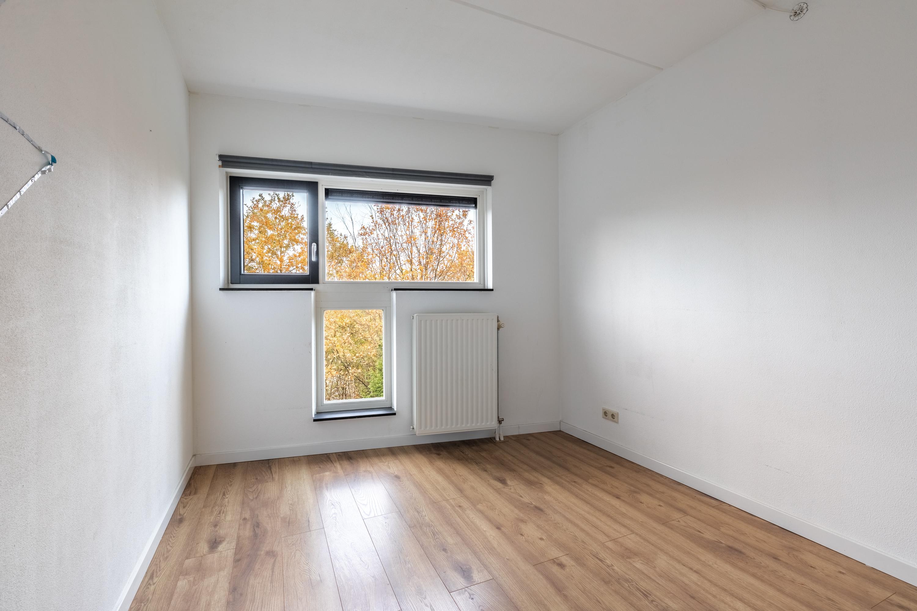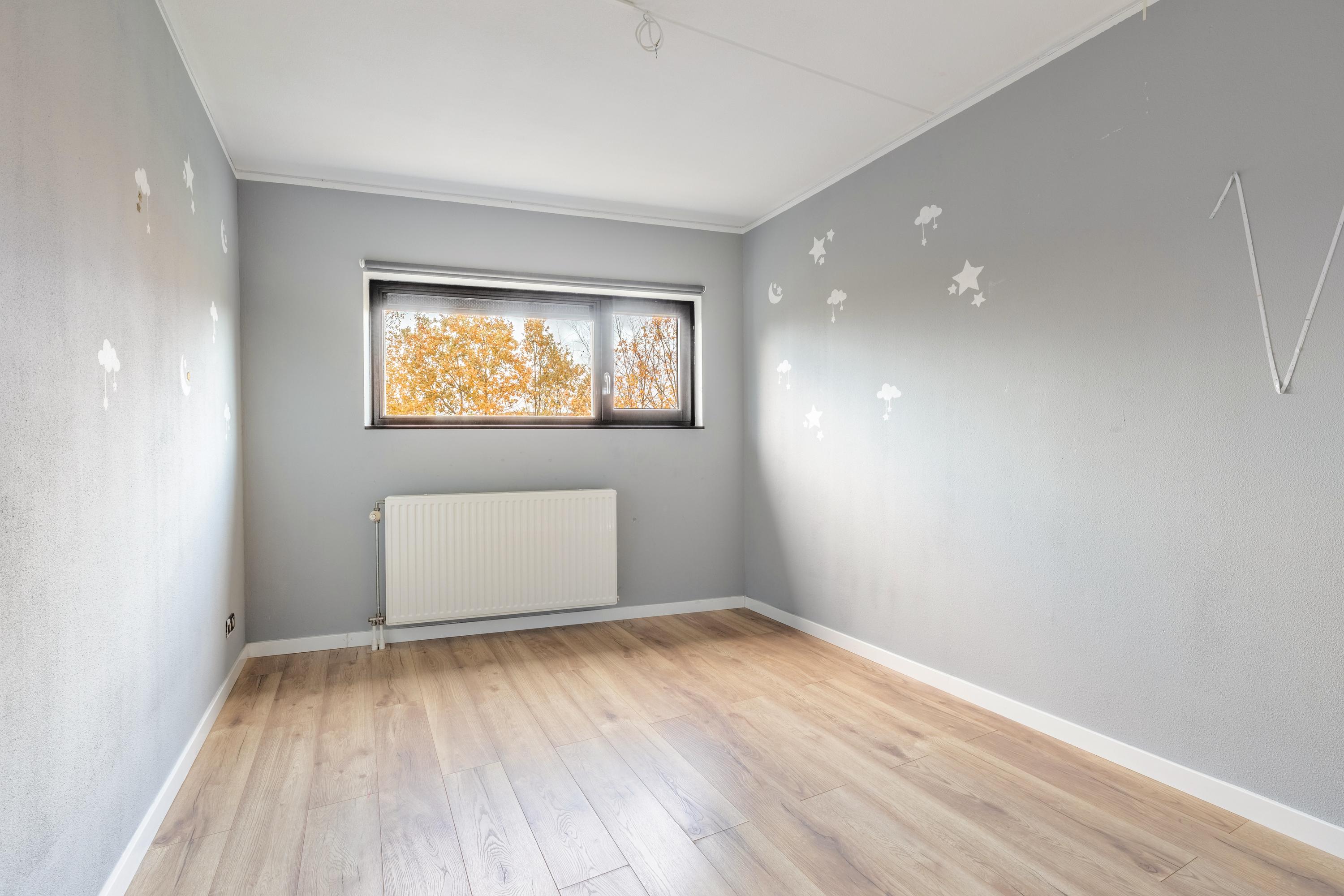 Twee slaapkamers liggen aan de achterzijde en zijn nu in gebruik als kinderkamers. De derde, zeer ruime slaapkamer ligt aan de voorzijde en is extra licht door het grote raam. Hier bevindt zich ook een riante inloopkast – ideaal voor wie van overzicht en opbergruimte houdt.