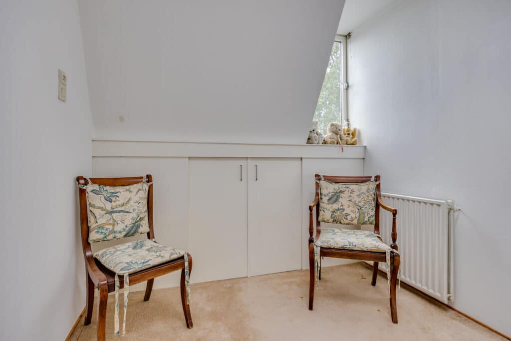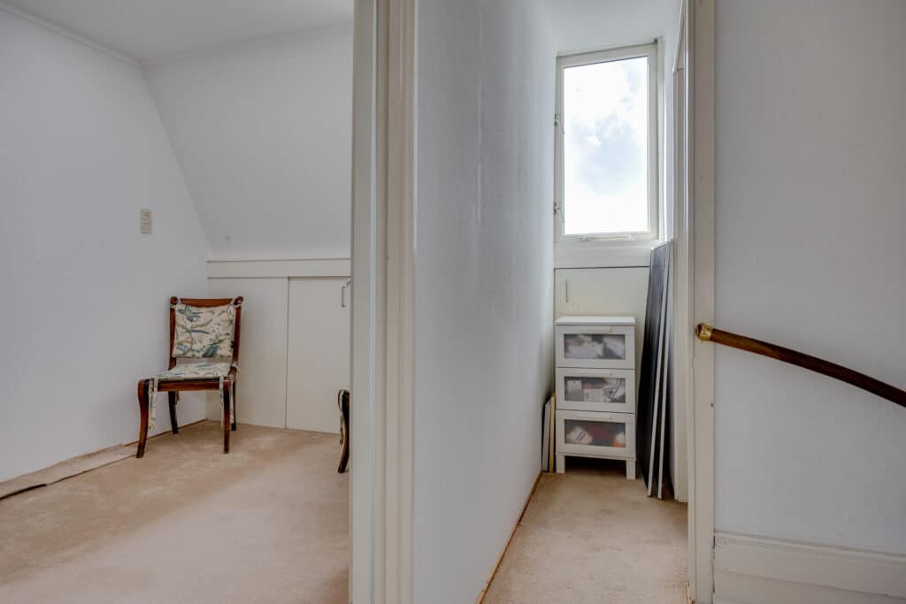 Eerste verdieping: op de eerste verdieping bereikt u via de ruime overloop alle vertrekken. Momenteel zijn er twee slaapkamers, maar het is eenvoudig mogelijk om een derde slaapkamer te realiseren en de woning terug te brengen naar de originele indeling. Daarnaast is er een praktische berging aanwezig.