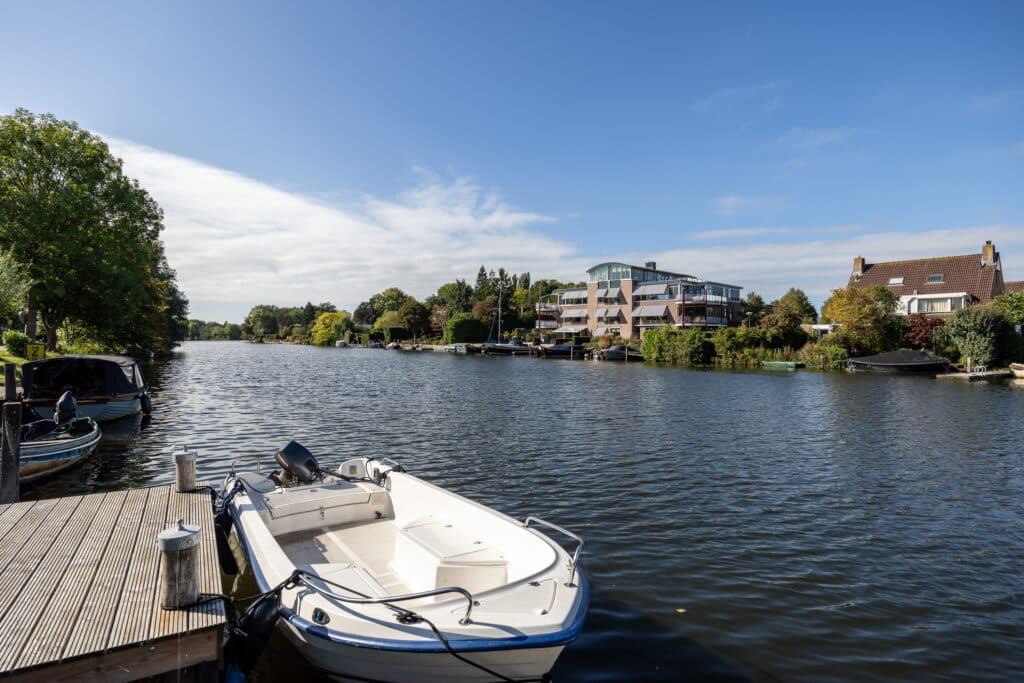 Ook aan de voorzijde van de woning is het uitzicht een genot: vanaf hier kijkt u uit over de rivier de Vecht. Of het nu gaat om een ontspannen tochtje met de sloep, een sportieve kanotocht of gewoon genieten van het water, dit is wonen met vakantiegevoel.
