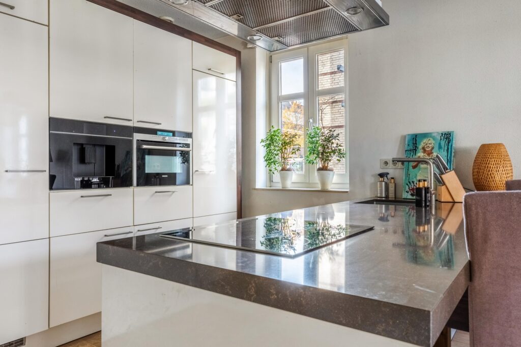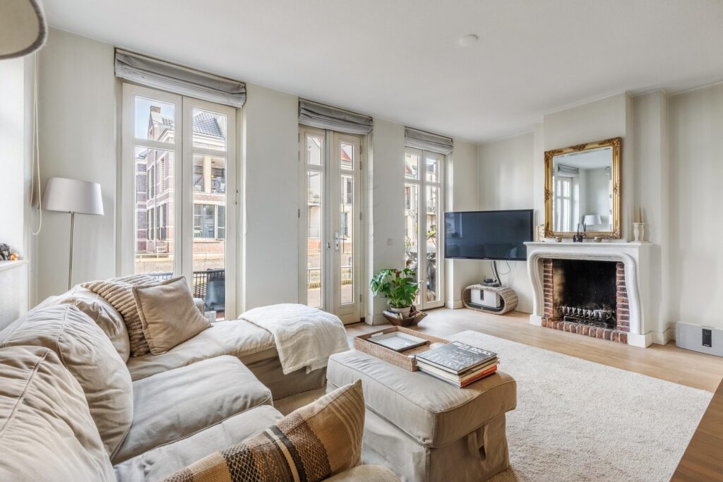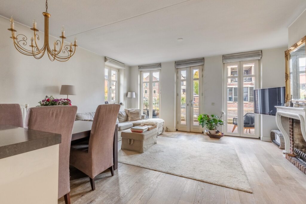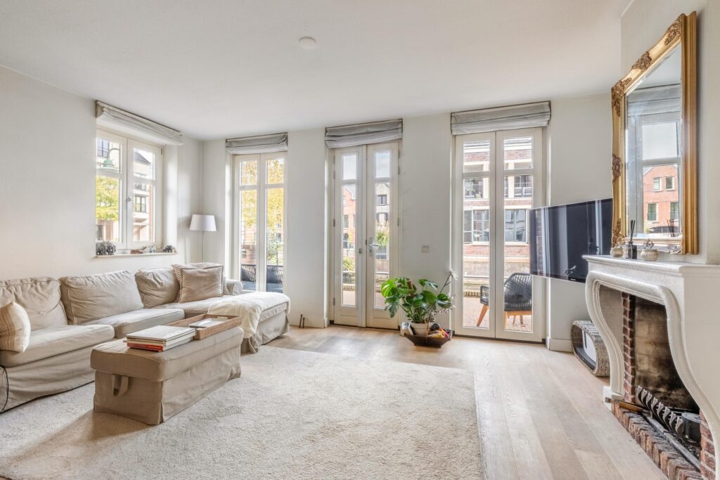 op de eerste verdieping is luxe afgewerkt en de open keuken (Siematic) op de begane grond is voorzien van diverse inbouwapparatuur van Siemens. Kortom: een sfeervolle, instapklare woning op een unieke plek in het hart van Bussum. Indeling Begane grond: Entree/hal, modern zwevend toilet en trapopgang. Aan de voorzijde bevindt zich de luxe Siematic-keuken met hoogwaardige Siemens-inbouwapparatuur, waaronder een inductiekookplaat, vaatwasser, combi-oven, koelkast, vriezer, afzuigkap en ingebouwde koffiemachine. De lichte woonkamer heeft grote raampartijen aan twee zijden, een houtgestookte open haard met schouw en een fraai uitzicht over de gracht. Dankzij de hoekligging is er extra lichtinval, wat zorgt voor een prettige, open sfeer. Eerste verdieping: Twee ruime slaapkamers met veel daglicht. Luxe badkamer met whirlpool (voor twee personen), inloopdouche, tweede toilet, wastafel en handdoekradiator. Tweede verdieping: Vaste trap naar de zolderverdieping. Een royale, lichte etage met aan de voorzijde de charmante torenkamer, die iets uitsteekt ten opzichte van de overige woningen en daardoor een panoramisch uitzicht biedt over Bussum. Tevens bevindt zich hier de wasruimte met cv-installatie en bergruimte. Deze verdieping is multifunctioneel te gebruiken als logeer-, werk- of hobbyruimte. Parkeerplaats De woning beschikt over een privéparkeerplaats in de ondergrondse parkeergarage. Deze parkeerplaats is inbegrepen in de koopsom. Daarnaast is er een extra parkeervergunning beschikbaar voor het centrum van Bussum. Bijzonderheden -Royaal hoekgrachtenpand met veel lichtinval en vrij uitzicht -Gelegen in het gewilde project Landstraat-Noord -Luxe afwerking met Siematic-keuken en Siemens-apparatuur -Houtgestookte open haard met Franse schouw -Drie ruime slaapkamers en een multifunctionele torenkamer -Volledig geïsoleerd, energielabel B -Eigen parkeerplaats in de parkeergarage -Actieve VvE, servicekosten circa € 93,- per maand -Instapklaar en uitstekend onderhouden