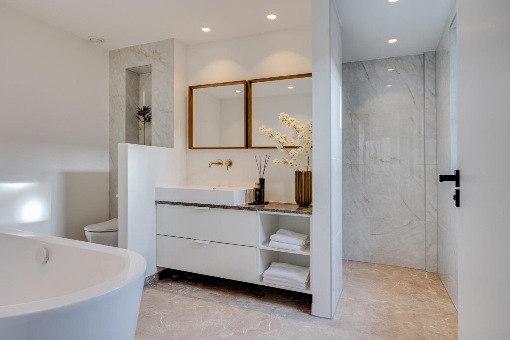 tot de kantoorruimte. De stijlvolle keuken met kookeiland is voorzien van alle hoogwaardige inbouwapparatuur waaronder een 6-pits inductiekookplaat, Quooker, 2 combi- ovens Wifi gestuurd met home connect systeem, vaatwasser, wijnklimaatkast en 2 koel-/vrieskasten. Door de openslaande deuren die grenzen aan de keuken, heeft u altijd zicht op de heerlijke buitenruimte. De ruime eet-/woonkamer grenst aan de prachtige inpandige patio, welke voor veel extra lichtinval zorgt. De volledige begane grond vloer is voorzien van vloerverwarming, airconditioning en een visgraatvloer. Via de trap met trapkast gaat u naar de eerste verdieping. Eerste verdieping: de overloop grenst aan 4 slaapkamers, een wasruimte, badkamer en een apart toilet. Twee slaapkamers beschikken over een luxe badkamer ensuite. Daarbij grenzen deze ook aan de inpandige patio, waarbij de master bedroom een frans balkon bezit. De master bedroom heeft een luxe badkamer met een vrijstaand bad, dubbele wastafel, toilet en inloopdouche. De overige badkamers beschikken over een wastafelmeubel en inloopdouche. De bovenverdieping is tevens voorzien van dakramen welke elektrisch bedienbaar zijn inclusief screens, een intercom met camera en bediening van de voordeur en airconditioning. Zolder: middels een vlizotrap is de zolder te bereiken en zorgt deze nog voor voldoende extra bergingsruimte. Bijzonderheden: - prachtige plek met alle voorzieningen bij de hand; - op loopafstand van het centrum; - volledig stijlvol gerenoveerde woning in historisch pand; - 4 slaapkamers en 3 badkamers, waarvan 2 ensuite; - vloerverwarming begane grond; - volledig voorzien van airconditioning; - mechanische installatie aanwezig; - volledig geïsoleerd; - oplevering kan snel; Een huis ziet, voelt en beleeft u pas echt tijdens een bezichtiging. Dat is hier nu reeds mogelijk. Dan pas ervaart u het “wauw gevoel” wat deze woning u geeft. Maak een afspraak en wij leiden u graag rond!