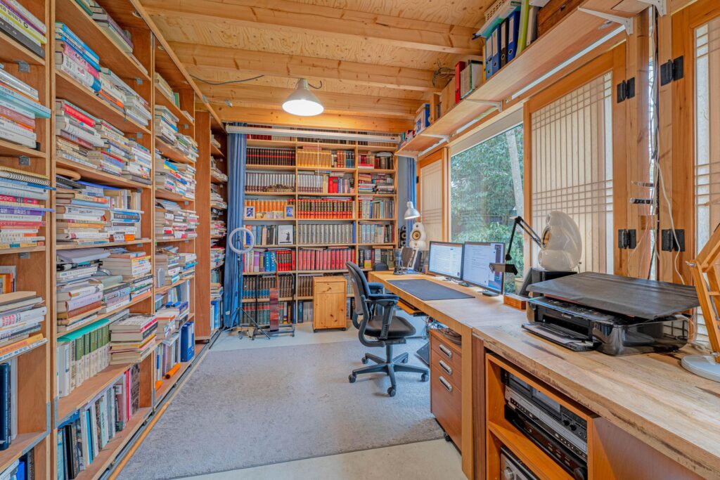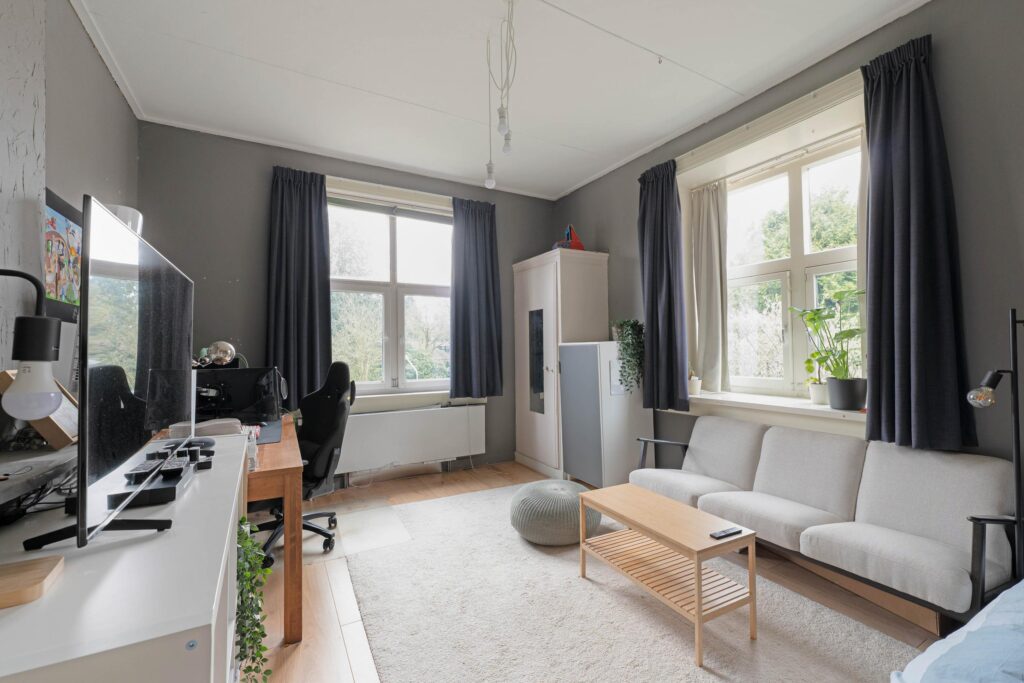 Aan de achterzijde bevindt zich een ruime slaapkamer die op dit moment is ingericht als tweede woonkamer.