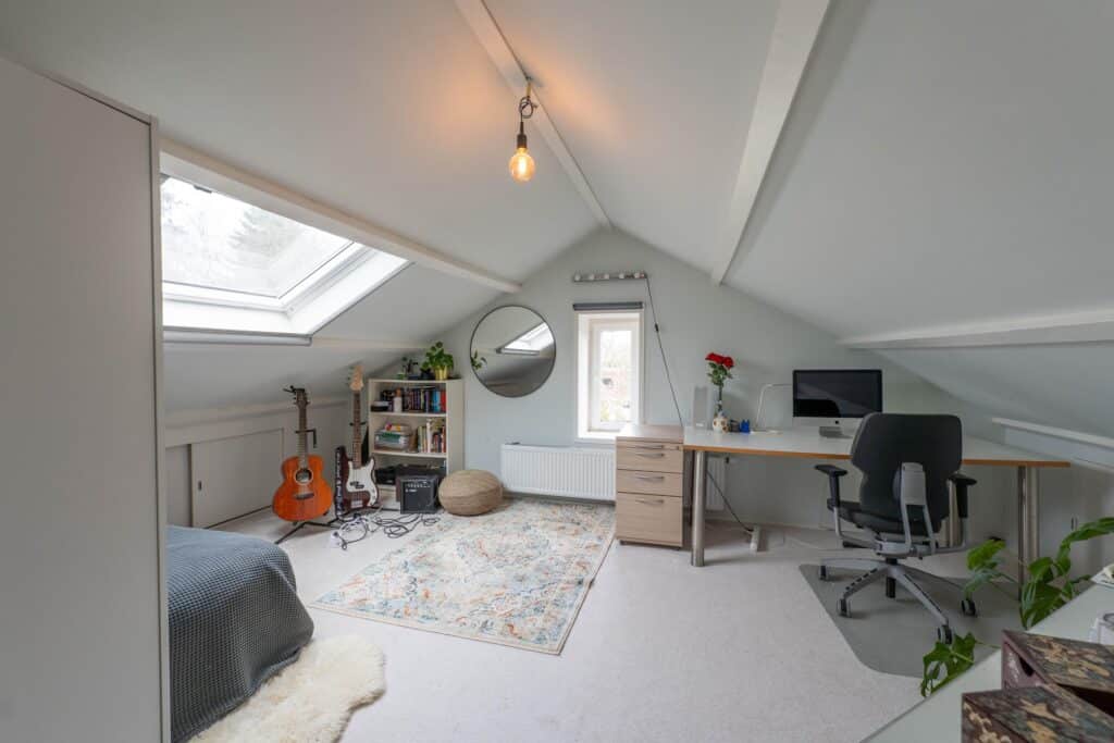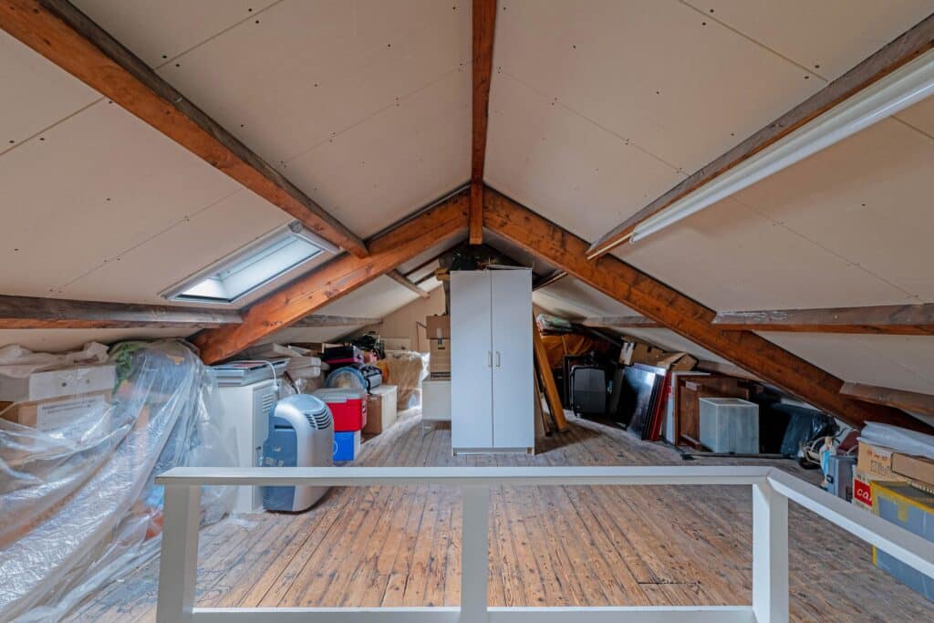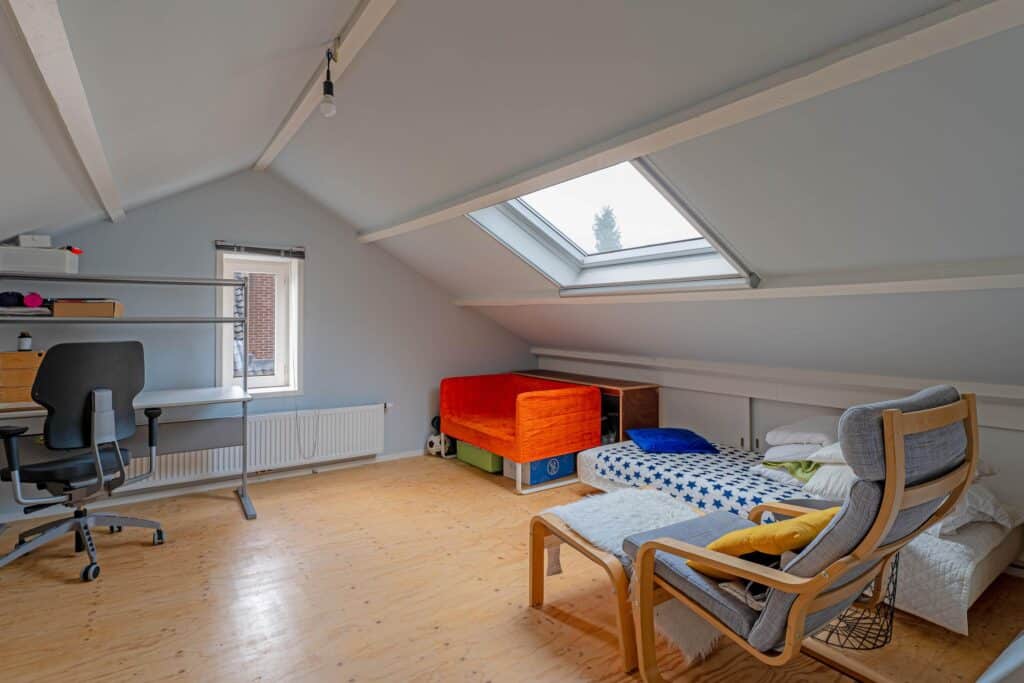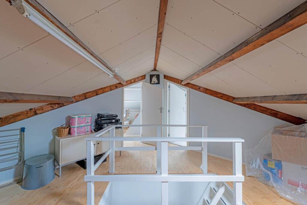 Tweede verdieping: Middels een vaste trap bereikt u de royale zolderverdieping. Hier zijn twee ruime kamers gerealiseerd, beide voorzien van dakramen die zorgen voor een prettige lichtinval. Daarnaast is er een grote open ruimte die momenteel dienstdoet als bergzolder. Deze ruimte biedt uitstekende mogelijkheden om eenvoudig een extra slaapkamer met badkamer te creëren, waarmee de zolderverdieping getransformeerd kan worden tot volwaardige leefetage.
