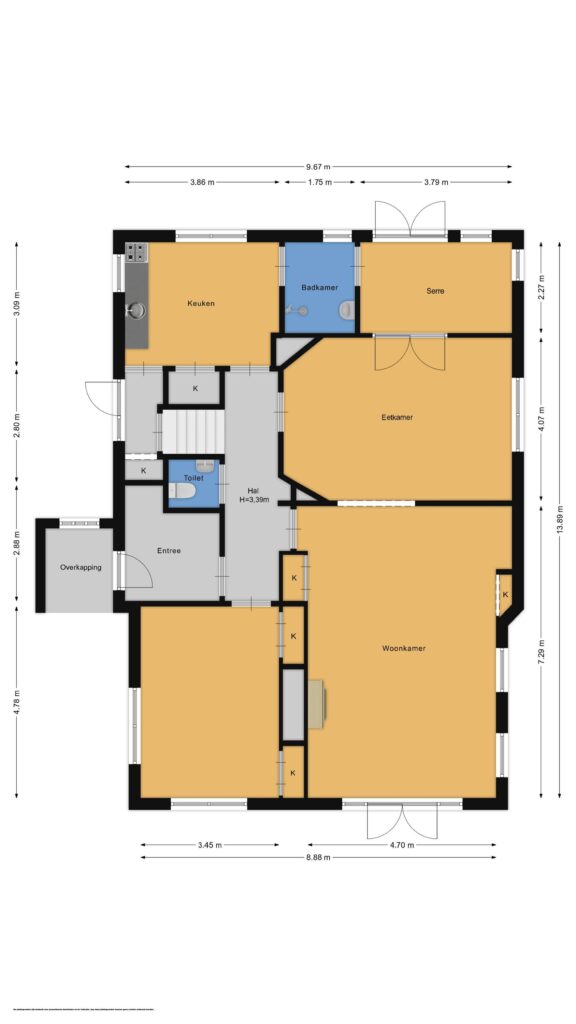 Begane grond: Bij binnenkomst biedt de entree ruimte voor een garderobe en leidt naar een ruime hal met toilet welke toegang geeft aan alle vertrekken. Aan de voorzijde van de woning bevindt zich een lichte kamer die zich perfect leent als speelruimte voor kinderen of als werk-/studeerkamer.