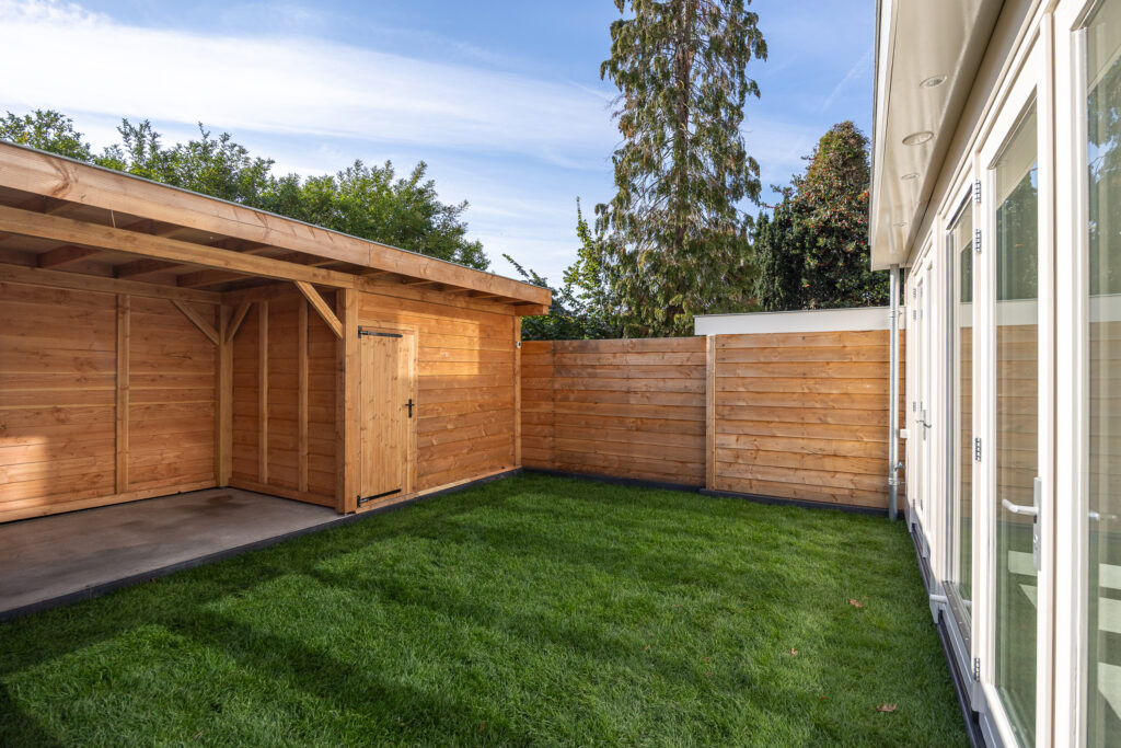 - zonnige tuin op het zuiden met een gezellige overkapping, ruime schuur en handige achterom;