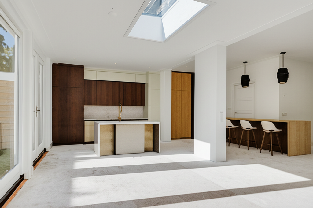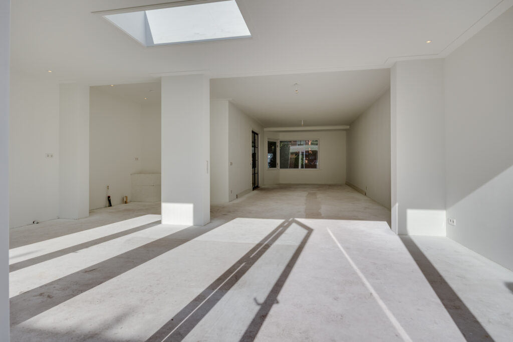 gerenoveerd (waaronder een nieuw dak, dakgoten, leidingwerk, elektra en een uitbouw aan de achterzijde) en nog niet bewoond. Tevens is er op de benedenverdieping bewust gekozen om geen vloer en geen keuken te plaatsen zodat een aspirant koper een eigen twist aan de woning kan toevoegen! Een keukenontwerp incl. kosten is aanwezig op kantoor.
