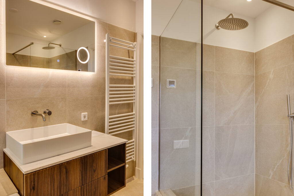Eerste verdieping: de overloop geeft toegang tot 4 in grootte variërende slaapkamers waarvan bijna alle kamers zijn voorzien van airconditioning en een moderne badkamer met o.a. vloerverwarming, inloopdouche, bad en wastafel.