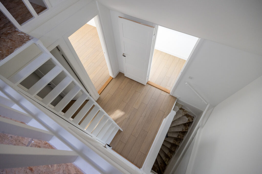 Tweede verdieping: middels een vaste trap bereikt u de tweede verdieping. Door het plaatsen van nieuwe dakkapellen zijn hier twee grote en een kleine kamer gerealiseerd. Tevens vindt u hier een tweede badkamer met vloerverwarming, douche, dubbele wastafel en toilet. Ook is er een leuke vide aanwezig; ideaal voor bijvoorbeeld een speelplek voor de kinderen of juist als extra bergruimte.