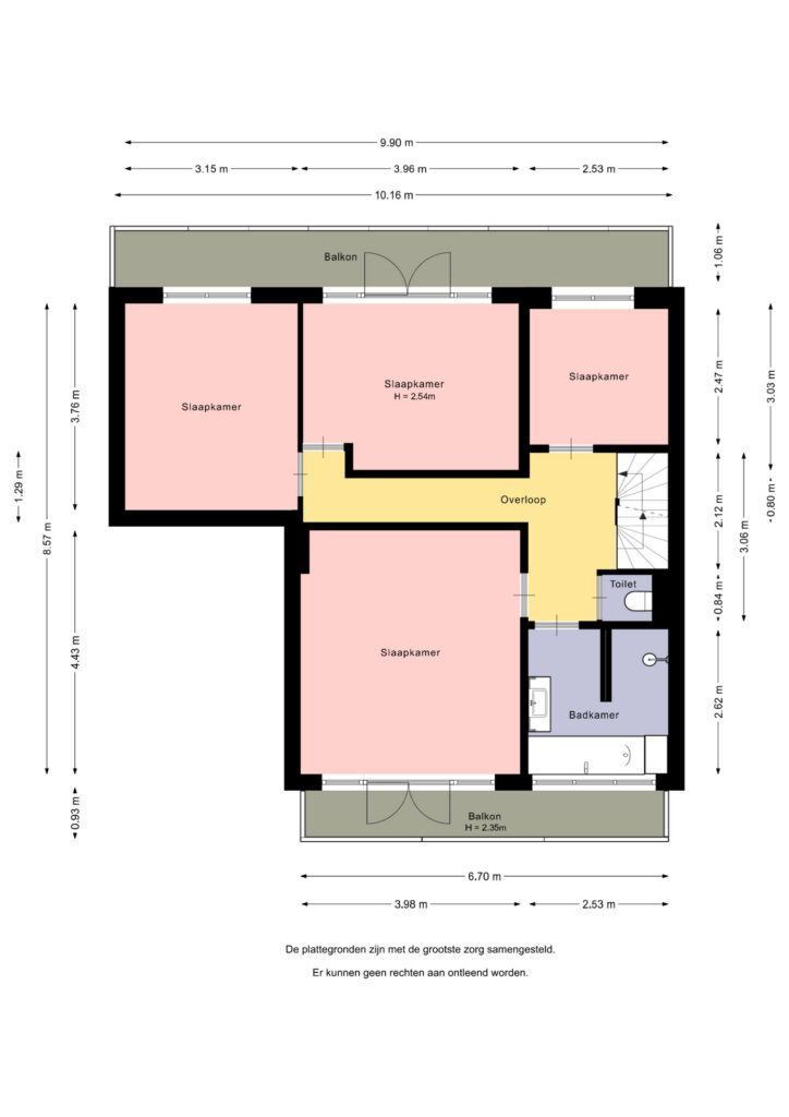 - balkon over de gehele breedte aan zowel de voor-/ als achterzijde;