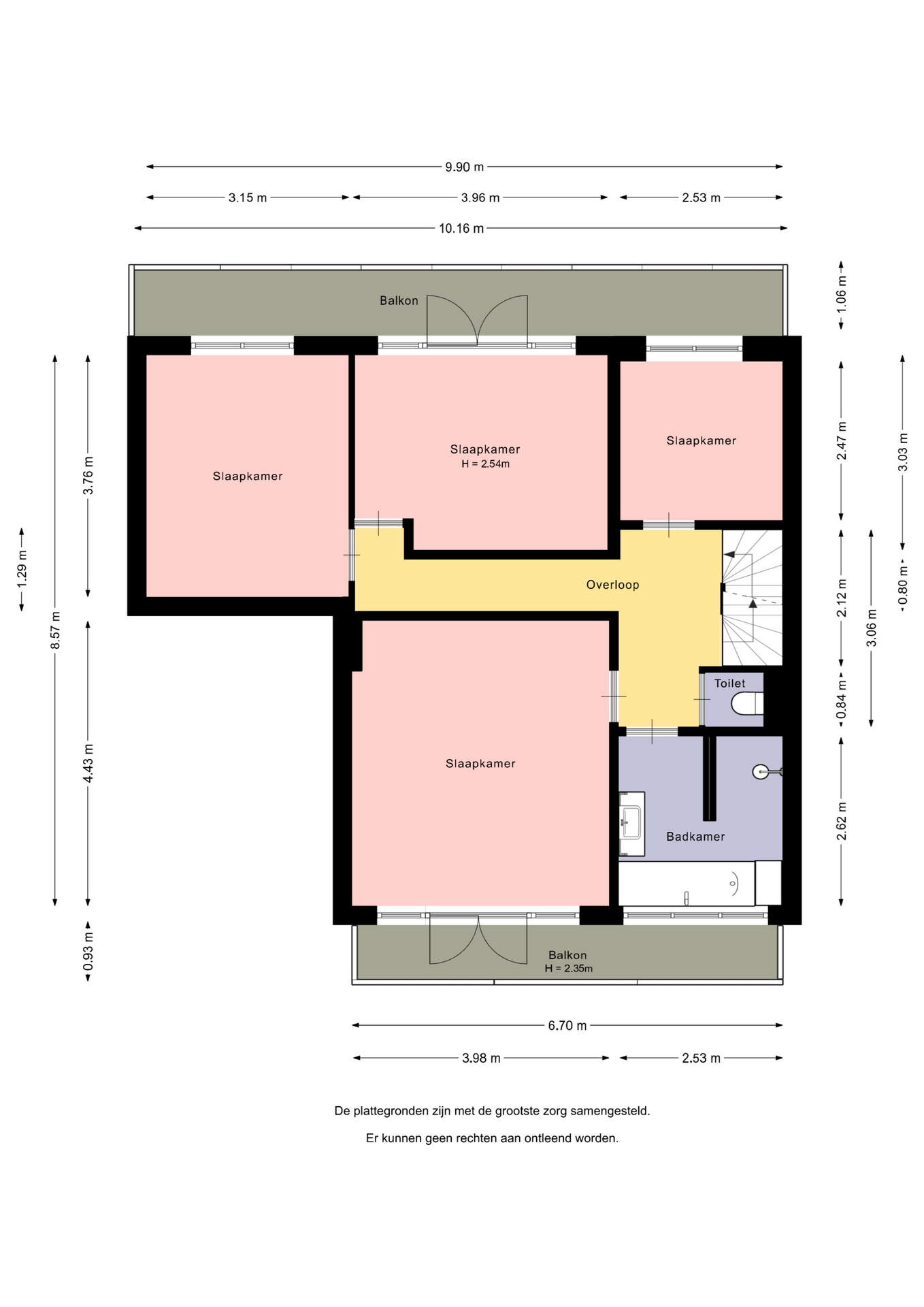 Zowel aan de voor-/ als achterzijde bevinden zich twee balkons gelegen over de gehele breedte van de woning.