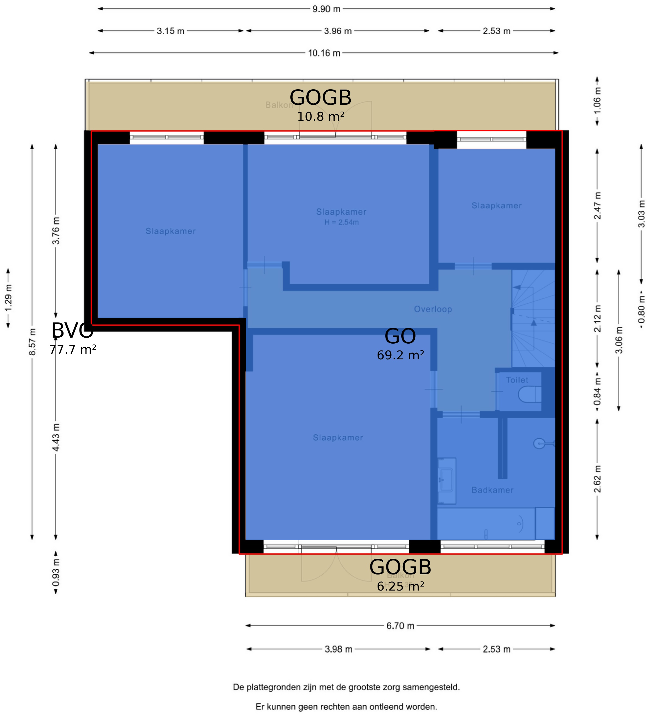- balkon over de gehele breedte aan zowel de voor-/ als achterzijde;