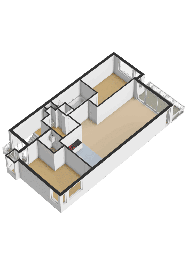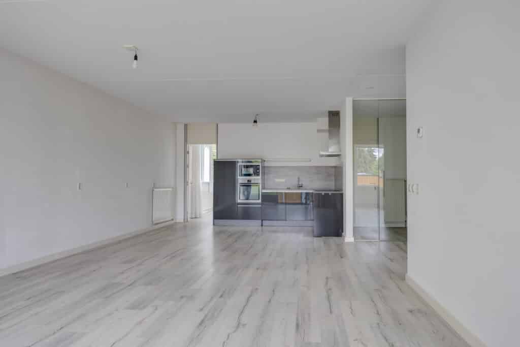 woonkamer van bijna 40 m². Grote ramen zorgen voor een zee aan licht en vanuit hier stapt u zo het zonnige terras op. Een heerlijke plek voor een ontspannen ontbijt, een goed boek of een gezellig diner met vrienden.