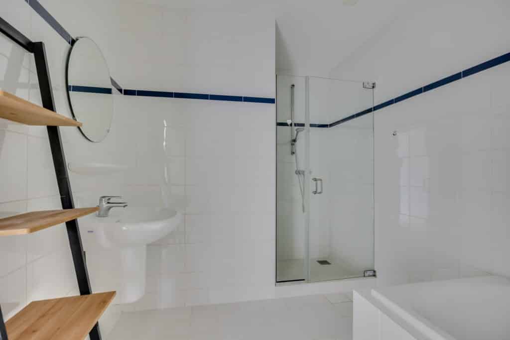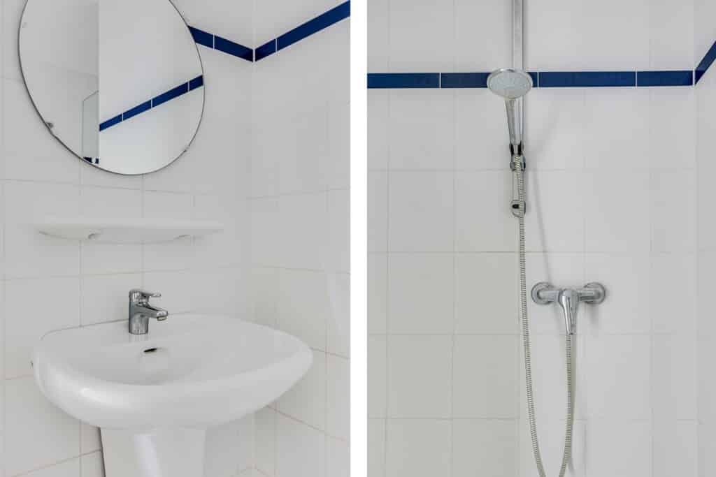 Aan de voorzijde van het appartement liggen de slaapkamers. Beide zijn ruim opgezet waardoor u alle vrijheid heeft voor een grote garderobe, een werkplek of logeerruimte. De badkamer grenst aan de slaapkamers en is voorzien van een ligbad, wastafel en douche: alles wat u nodig heeft voor comfortabel wonen.