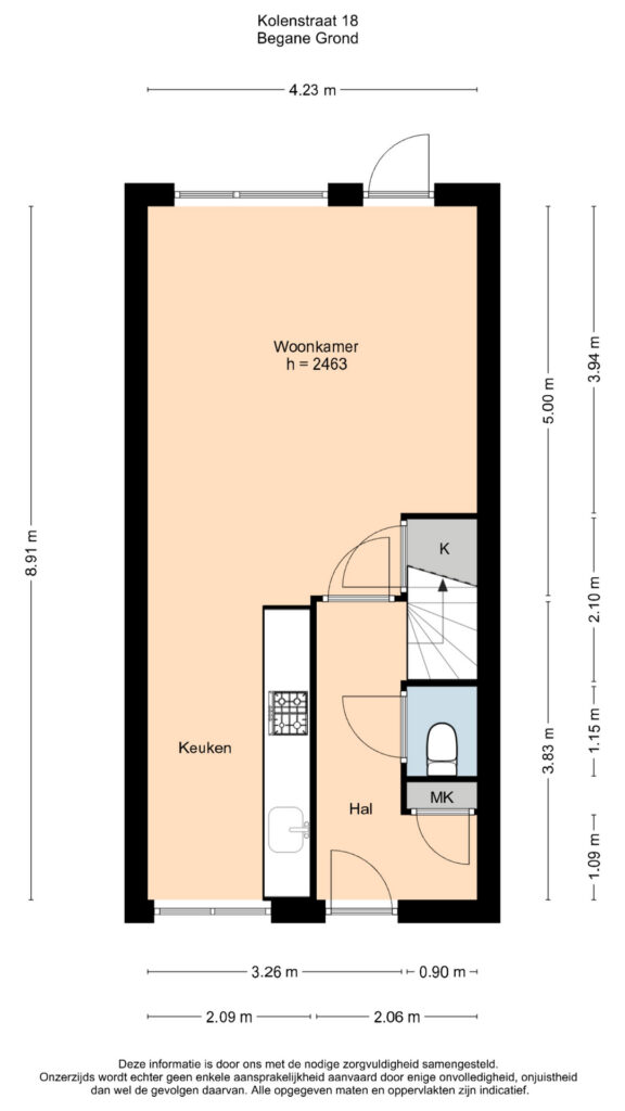 Via de entree kom je in de hal met toilet en trapopgang. De lichte woonkamer biedt toegang tot de tuin en voelt prettig ruim aan.