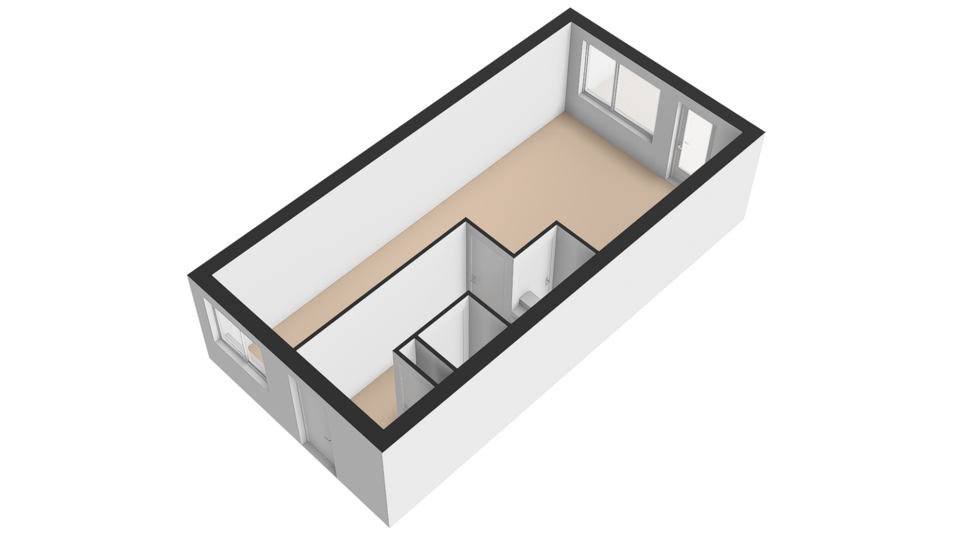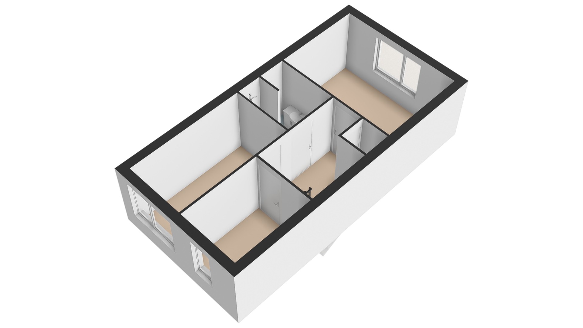 De overloop geeft toegang tot drie slaapkamers. Aan de achterzijde de hoofdslaapkamer. Aan de voorzijde twee slaapkamers.