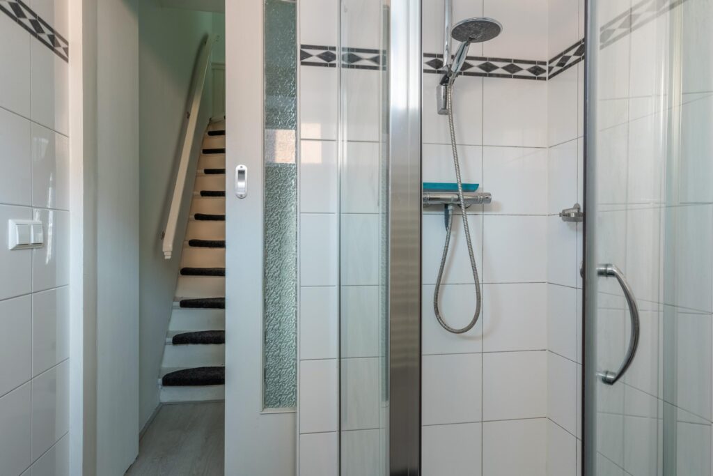 Tweede verdieping: via een vaste trap bereikt u de tweede verdieping met overloop. Hier bevinden zich twee ruime slaapkamers en een derde, kleinere kamer. Tevens is er een derde badkamer met douche en wastafel, een separaat toilet en een praktische ruimte voor de wasmachine- en drogeropstelling. Op deze verdieping is het mogelijk om een extra keuken te realiseren, aangezien de aansluitingen al aanwezig zijn – ideaal voor dubbele bewoning of verhuur.