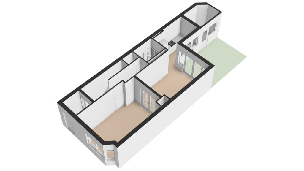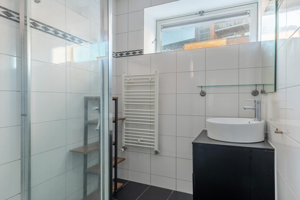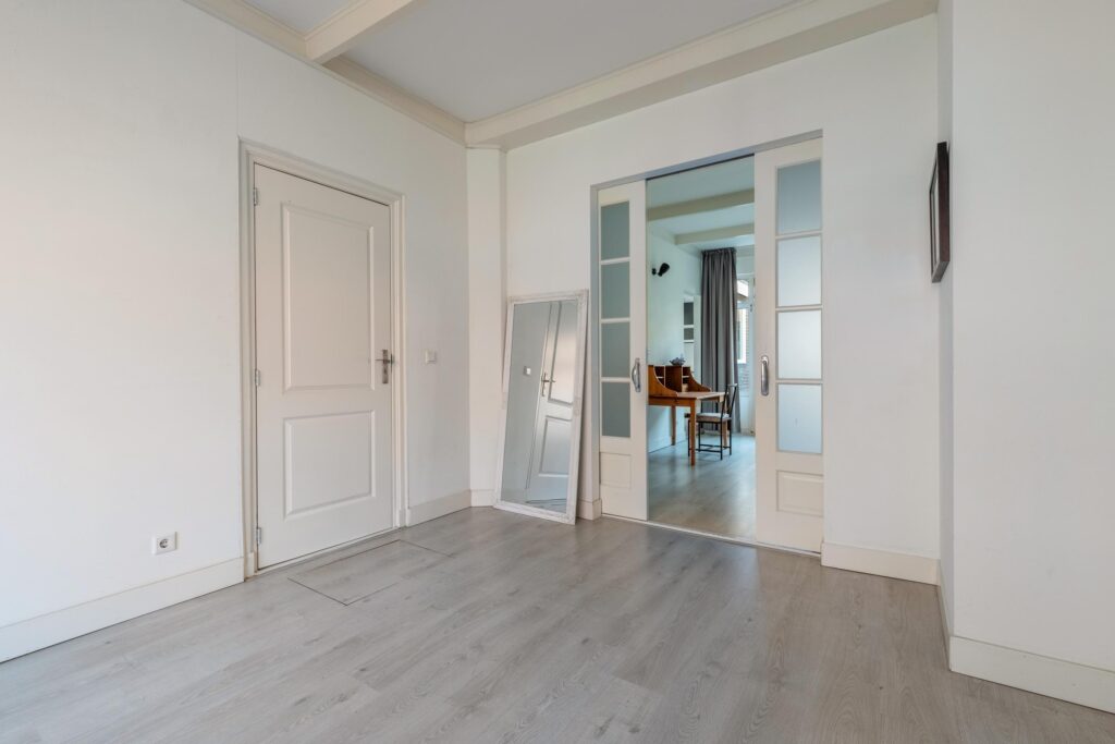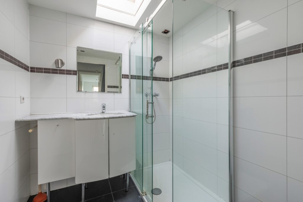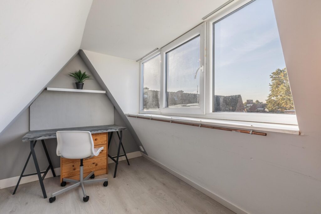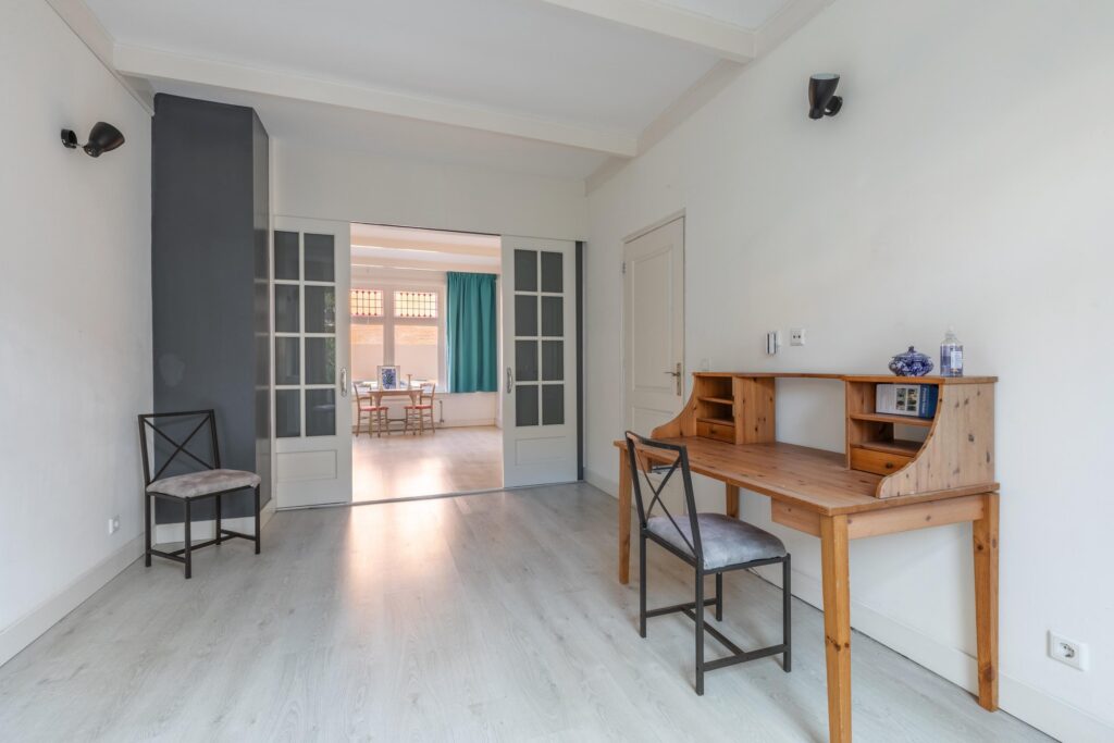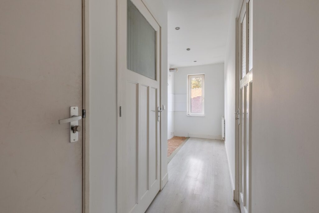 Tweede verdieping: via een vaste trap bereikt u de tweede verdieping met overloop. Hier bevinden zich twee ruime slaapkamers en een derde, kleinere kamer. Tevens is er een derde badkamer met douche en wastafel, een separaat toilet en een praktische ruimte voor de wasmachine- en drogeropstelling. Op deze verdieping is het mogelijk om een extra keuken te realiseren, aangezien de aansluitingen al aanwezig zijn – ideaal voor dubbele bewoning of verhuur.