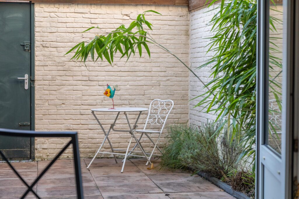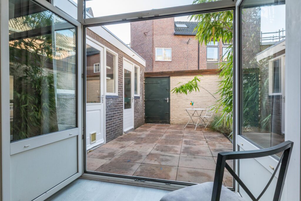 - gezellige stadsachtertuin met achterom en schuurtje;