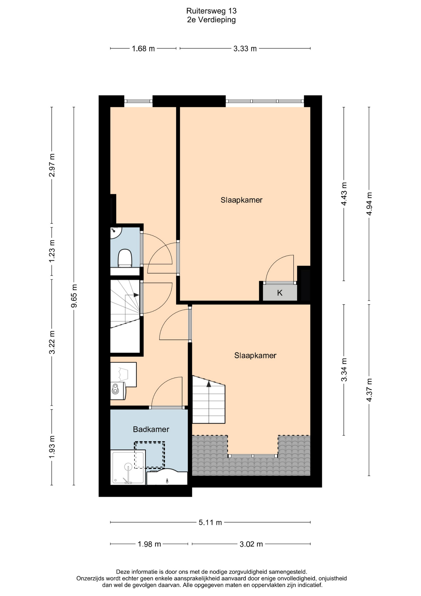Tweede verdieping: via een vaste trap bereikt u de tweede verdieping met overloop. Hier bevinden zich twee ruime slaapkamers en een derde, kleinere kamer. Tevens is er een derde badkamer met douche en wastafel, een separaat toilet en een praktische ruimte voor de wasmachine- en drogeropstelling. Op deze verdieping is het mogelijk om een extra keuken te realiseren, aangezien de aansluitingen al aanwezig zijn – ideaal voor dubbele bewoning of verhuur.