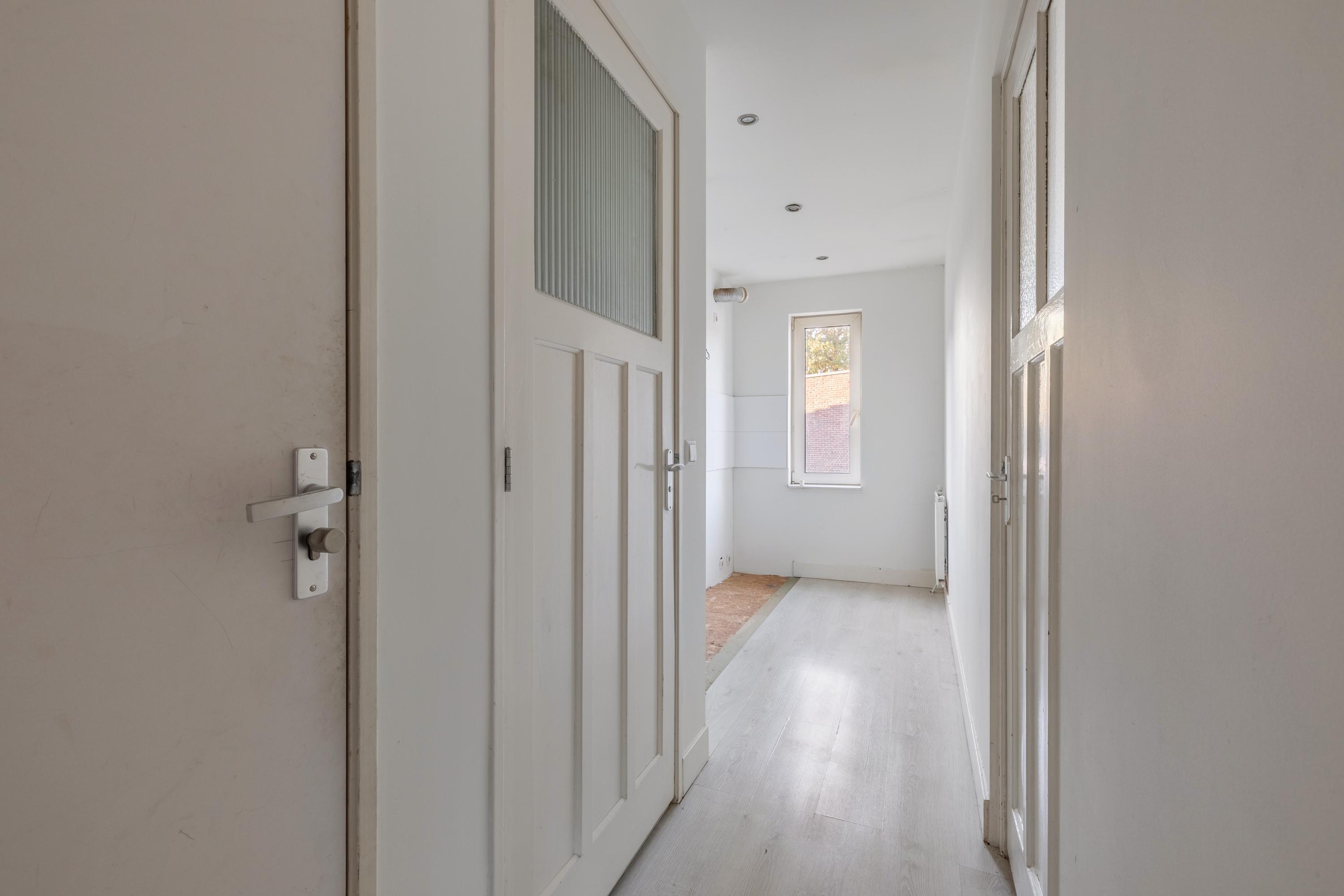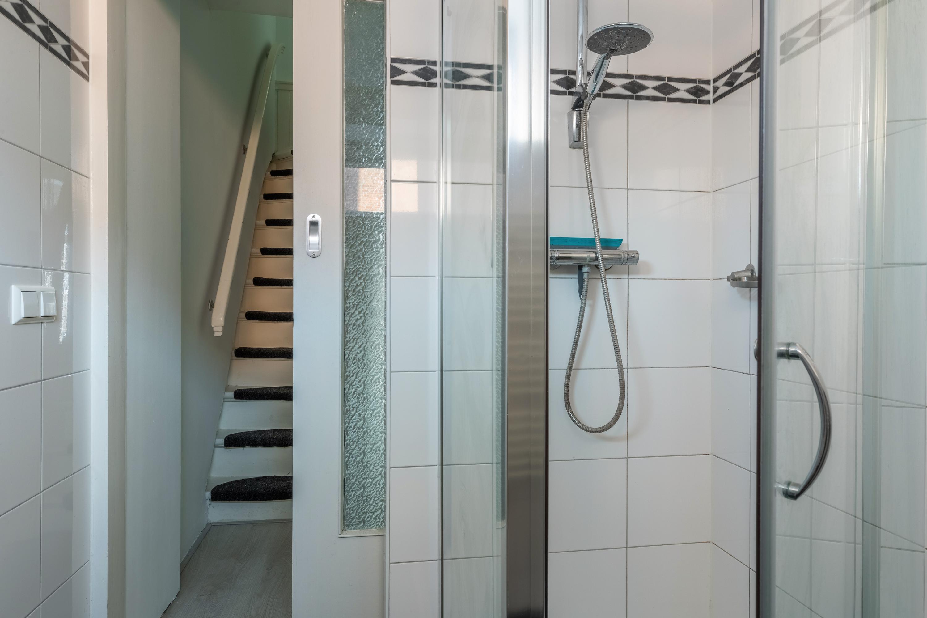 Begane grond: entree met hal, trap naar de stahoge kelder en een toilet met fonteintje. Tevens bevindt zich op deze etage een badkamer met douche en wastafel. De lichte woonkamer heeft een prettige zithoek aan de voorzijde en voldoende ruimte voor een royale eethoek aan de tuinzijde. Aan de achterzijde ligt de open keuken, voorzien van een keukenblok met spoelbak, 4-pits gasfornuis en afzuigkap. Via openslaande deuren bereikt u de gezellige stadstuin met achterom, waar zich tevens een berging bevindt – ideaal voor fietsen en extra opslag.
