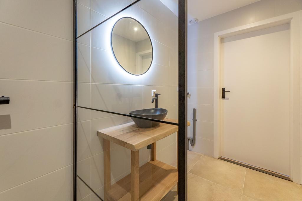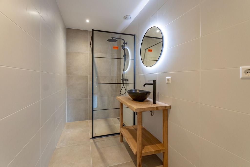 Entree, lange ruime hal met toegang tot toilet, berging met opstelling warmtepomp, ruime slaapkamer met badkamer en suite voorzien van designwastafel, ruime inloopdouche en wasmachine aansluiting. Lichte ruime woonkamer met voldoende plek voor een eettafel en gezellige zit. Strakke open keuken welke is voorzien van hard stenen blad en diverse inbouwapparatuur te weten: koel/vriescombinatie, oven, inductiekookplaat en afzuigkap.