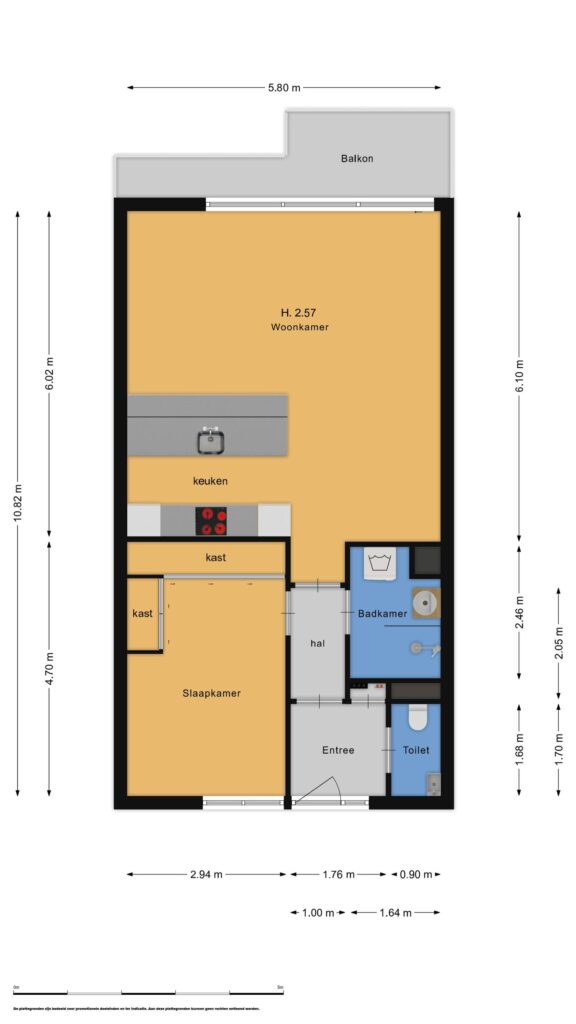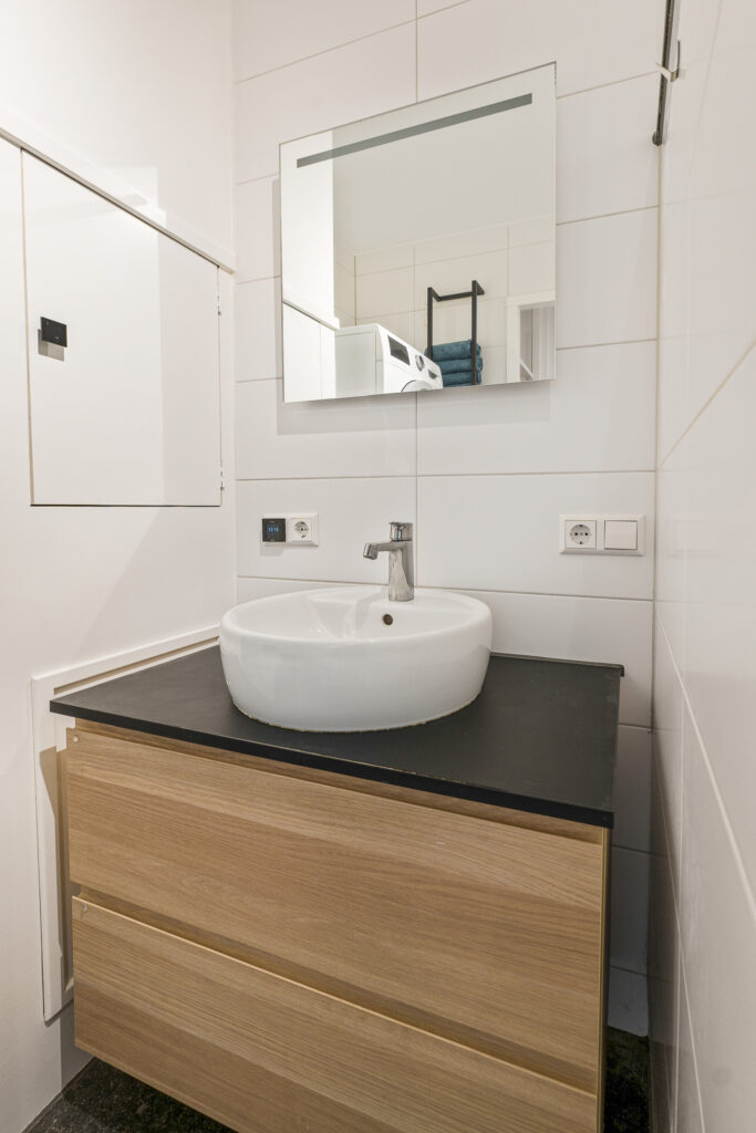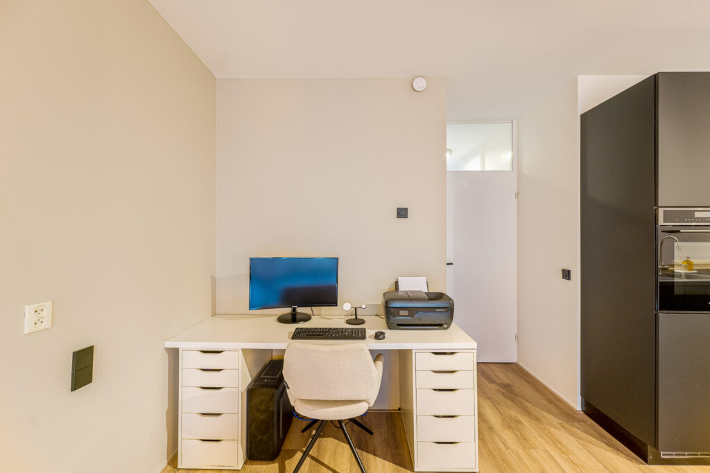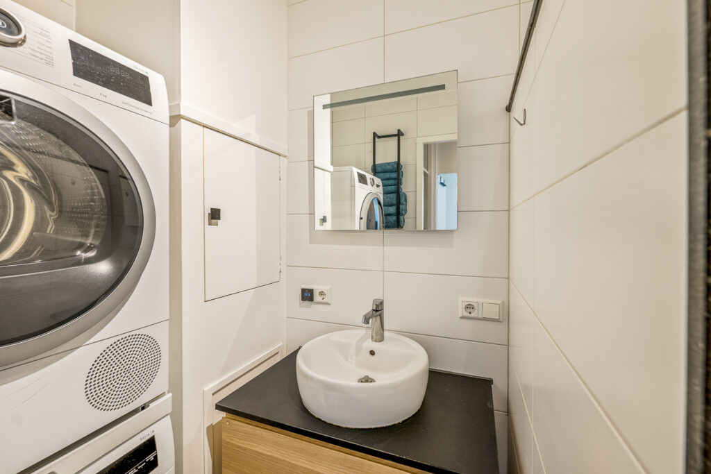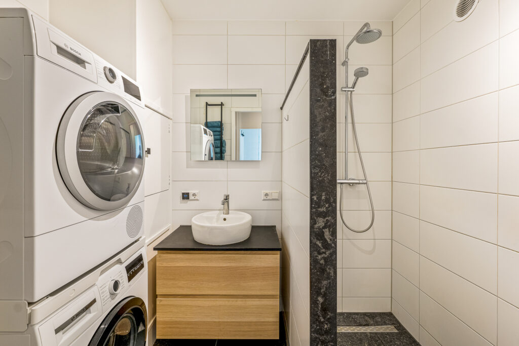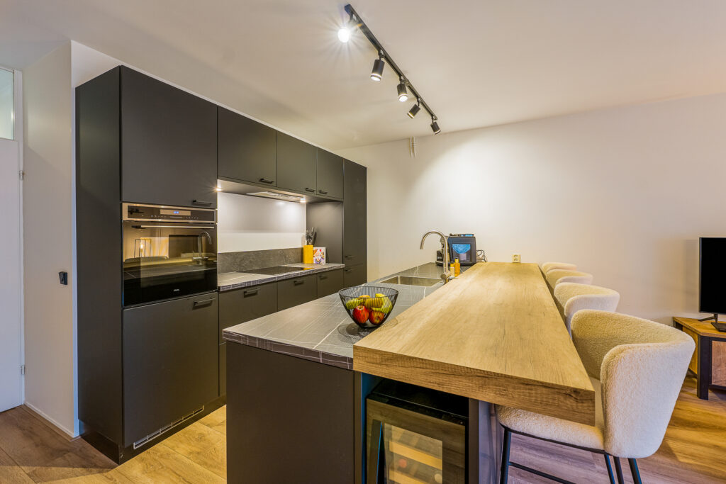 INDELING: entree, hal, zwevend toilet met fonteintje, meterkast, badkamer met inloopdouche, wastafelmeubel en wasmachine-opstelling, royale slaapkamer met vaste kasten, lichte living met complete open keuken. De keuken (2023) is modern uitgevoerd en voorzien van een gezellige bar, veel opbergruimte en luxe inbouwapparatuur, waaronder een klimaatkast, heetwaterkraan, inductiekookplaat, koelkast en combi-oven. Via de schuifpui is er toegang tot het balkon op het westen.