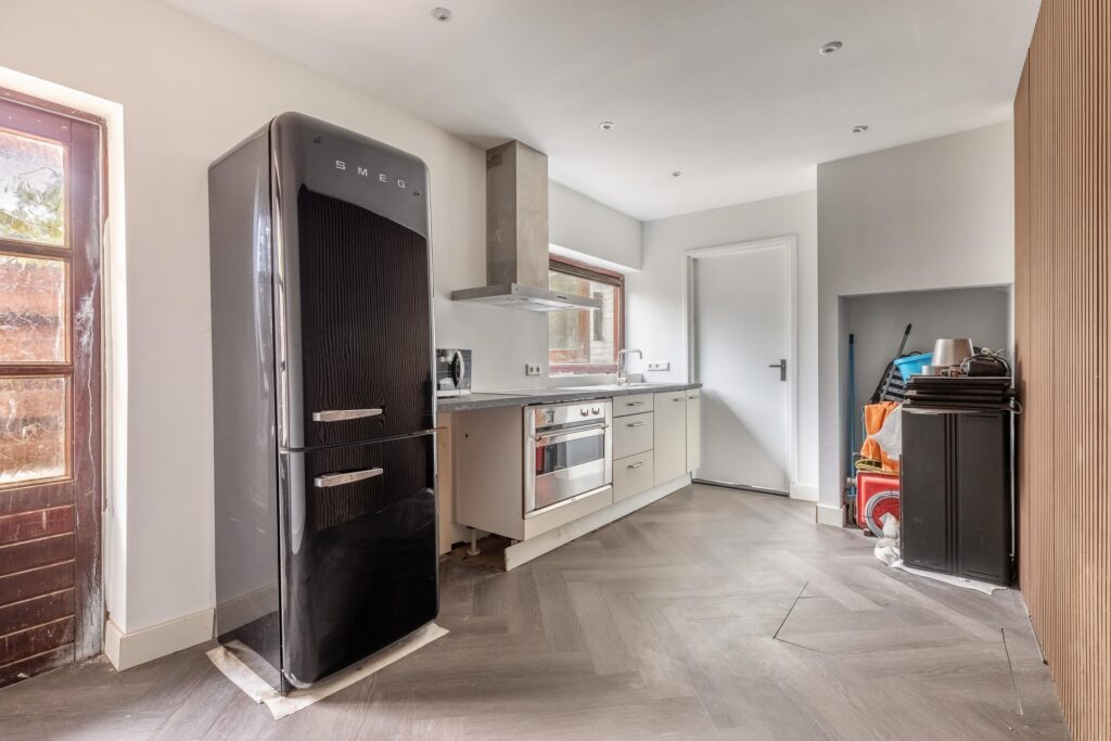 inbouwapparatuur, grote koel-vriescombinatie en vaatwasser. Vanuit de keuken is er toegang tot de stahoge kelder, geschikt als extra bergruimte.