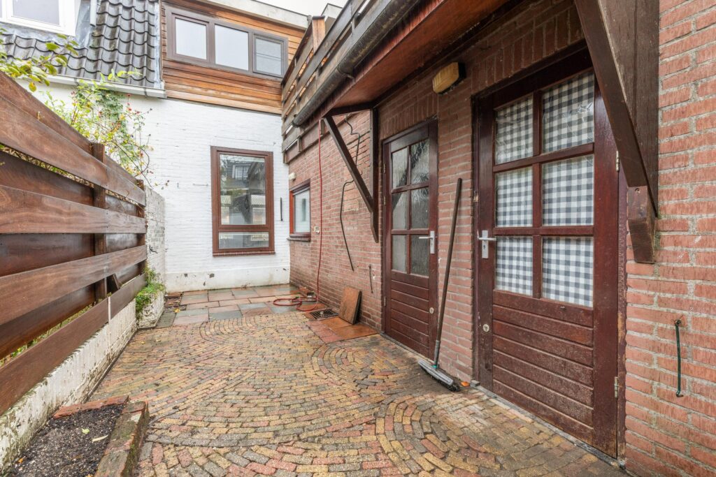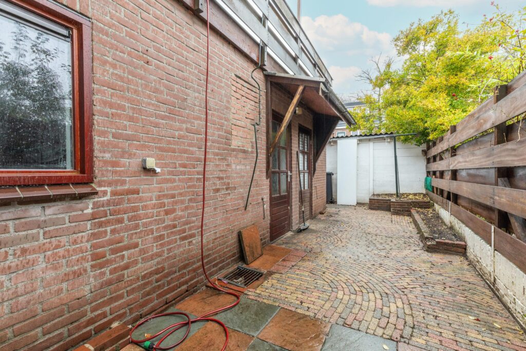 De achtertuin, gelegen op het zuidwesten, beschikt over een aangebouwde stenen schuur met elektra en een achterom.