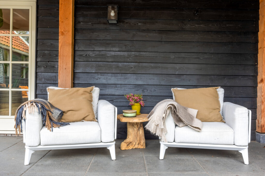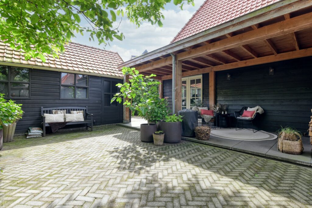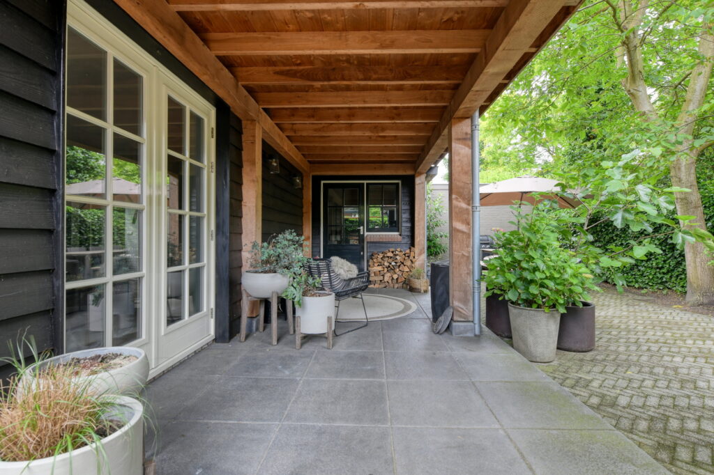 De achterdeur geeft toegang tot het terras en de loungeoverkapping (wat een sfeer!) aan de achterzijde.