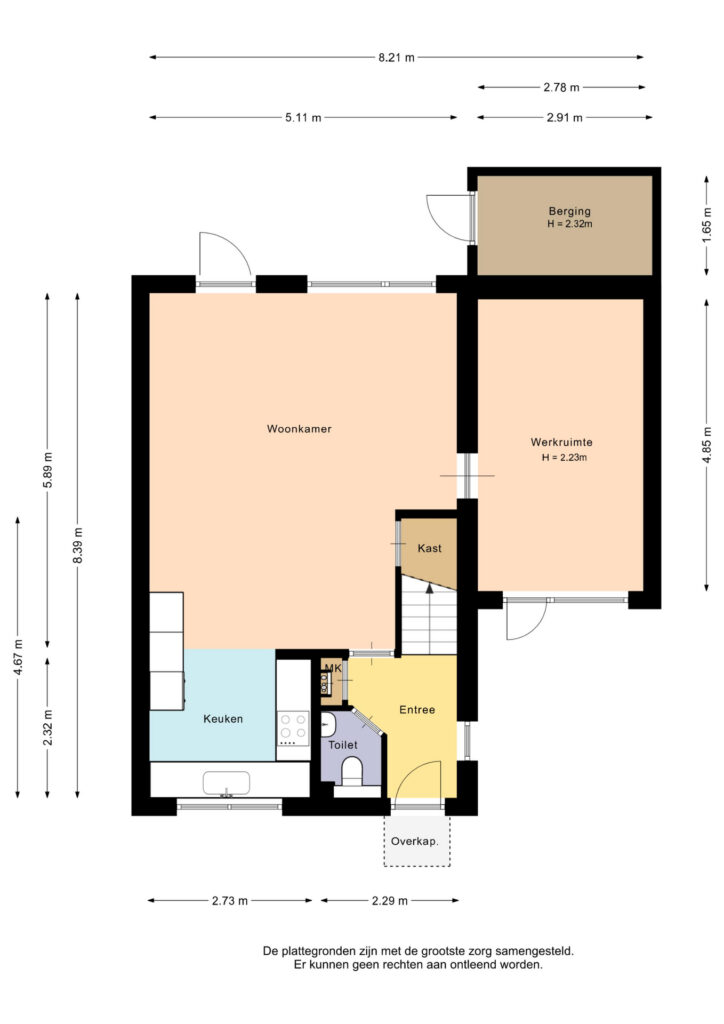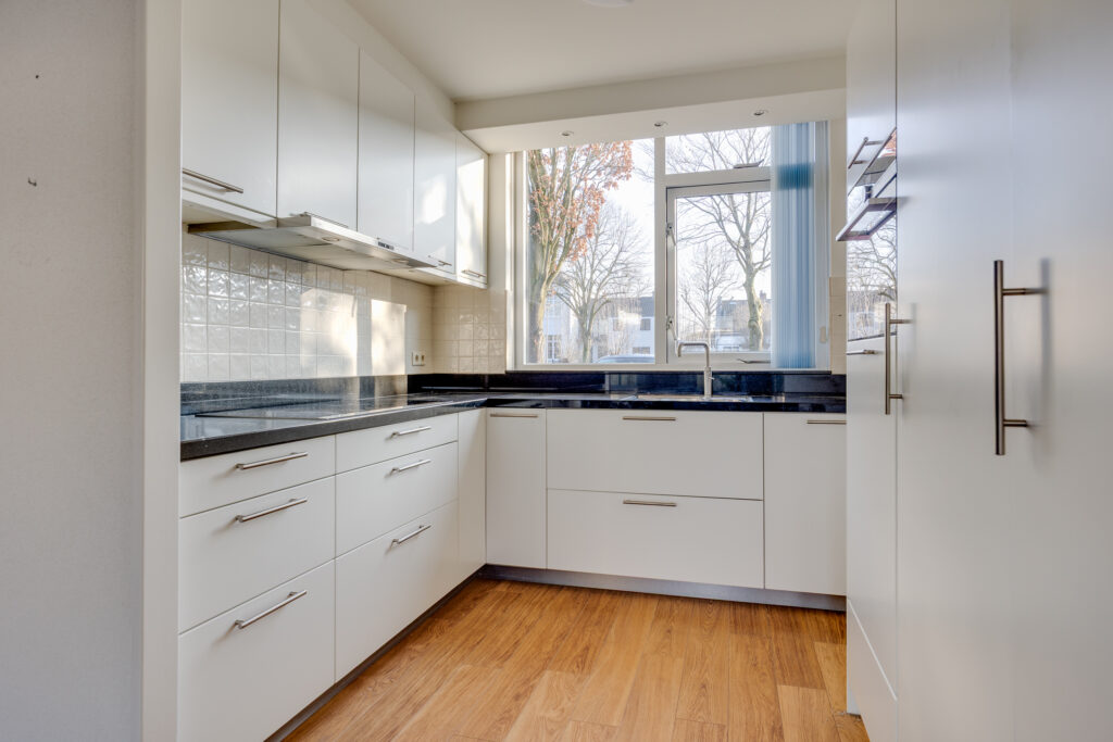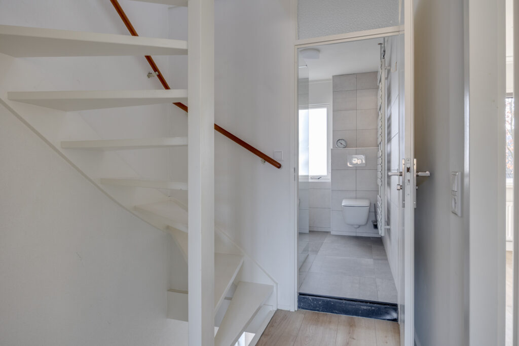 Begane grond: entree met hal, toilet en trapopgang. Vanuit de hal is de ruime woonkamer bereikbaar, met prettig daglicht en voldoende ruimte voor een zit- en eethoek. De keuken bevindt zich aan de voorzijde van de woning en is uitgevoerd met een kookplaat, Quooker-kraan, stenen werkblad, combi-magnetron en ruime kastruimte. Aan de zijkant van de woning bevindt zich een afzonderlijke werkruimte op de begane grond, gerealiseerd in de voormalige garage, waardoor de woning uitstekend geschikt is voor thuiswerken of een werkplek aan huis.