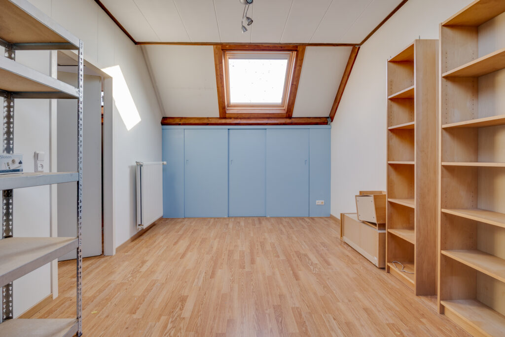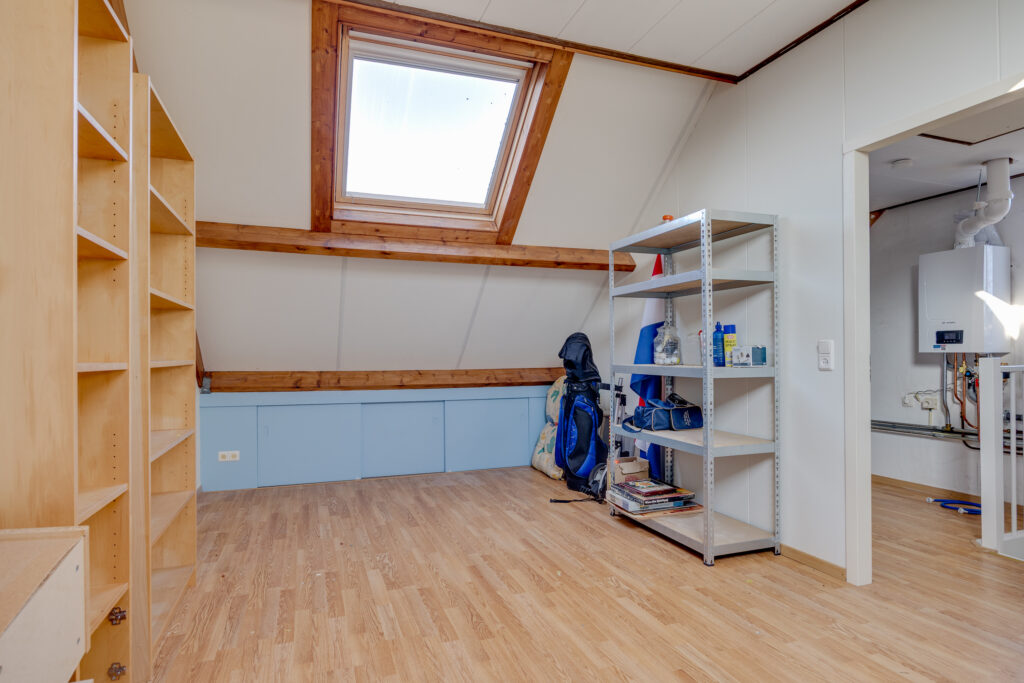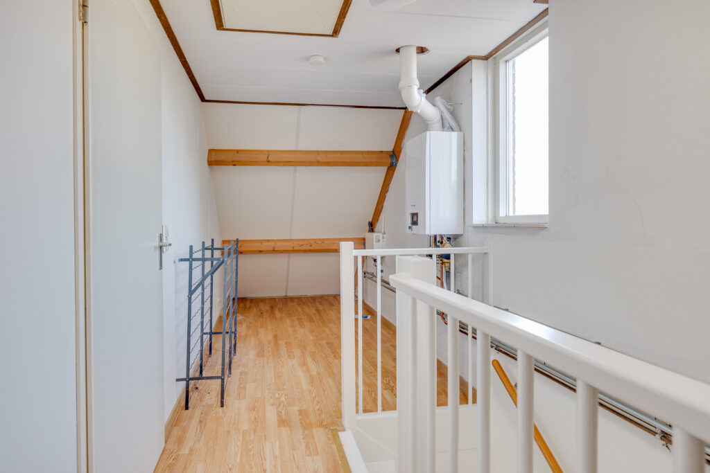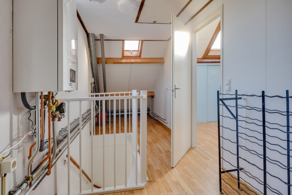 Tweede verdieping: de tweede verdieping beschikt over een slaapkamer en een overloop met aansluiting voor de wasmachine en opstelling van de cv-ketel. Daarnaast is er praktische bergruimte aanwezig onder de kap. Boven de tweede verdieping is een vliering aanwezig, geschikt voor extra opslag.