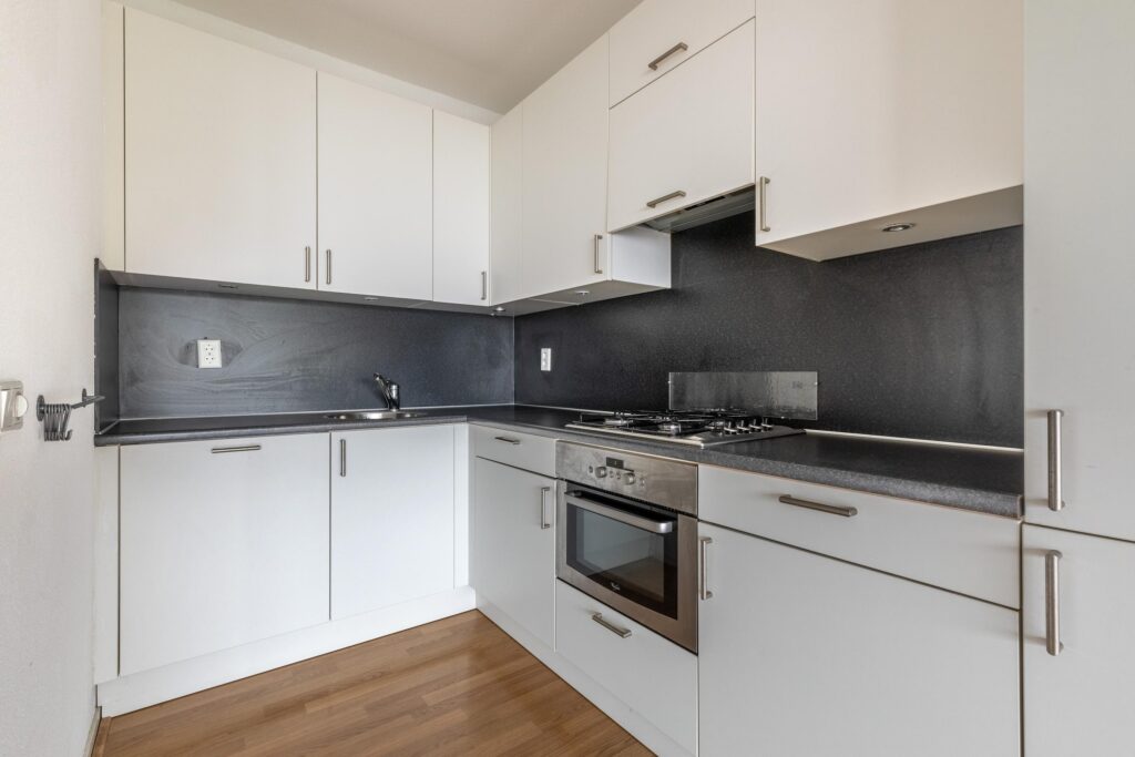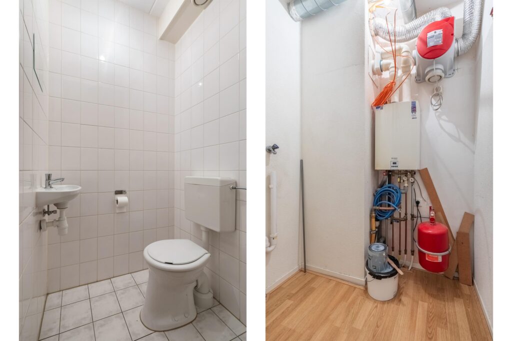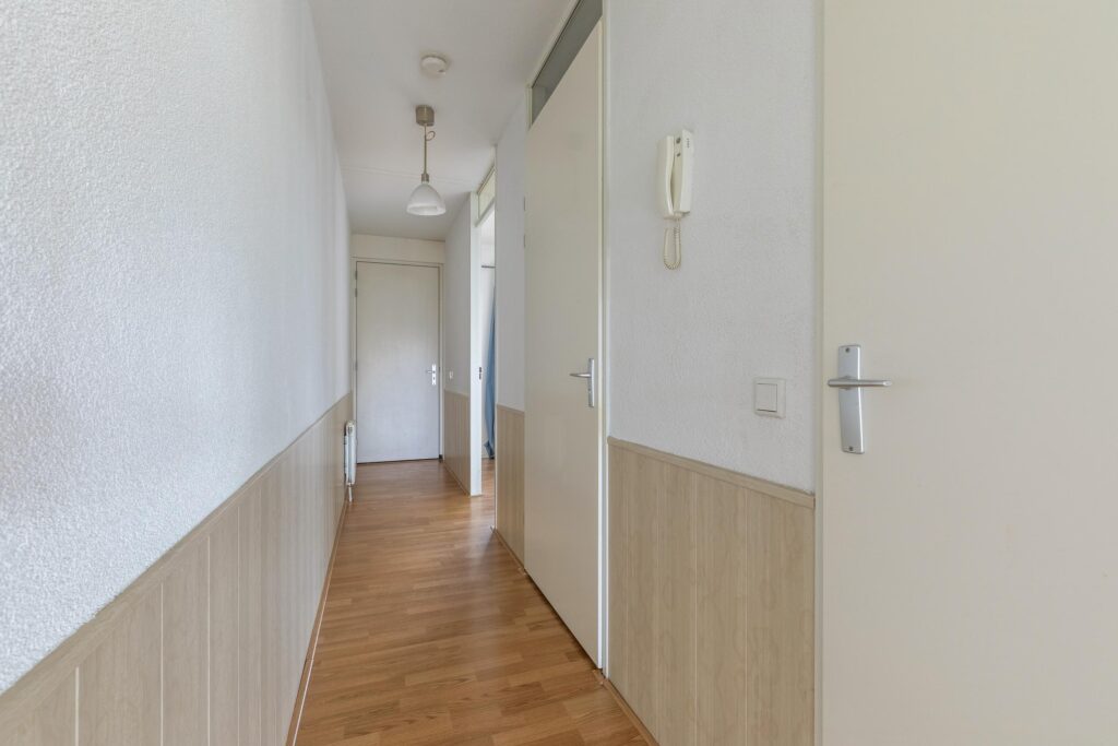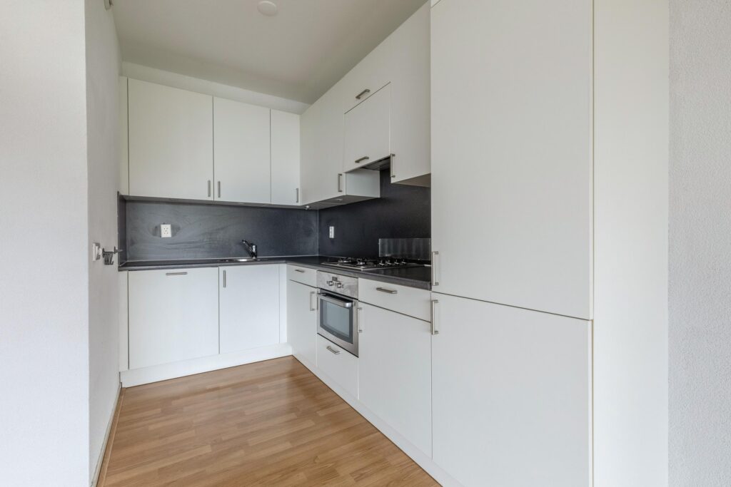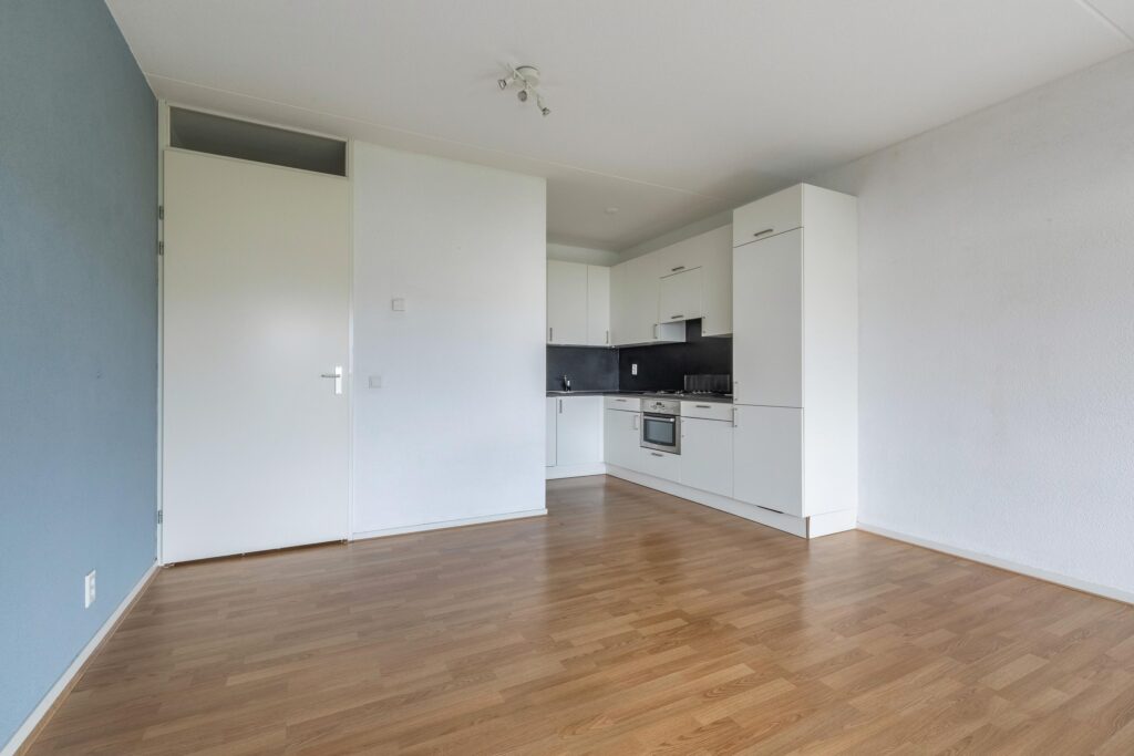 Entree, ruime slaapkamer met aangrenzende badkamer voorzien van een douche en vaste wastafel, een modern toilet met fonteintje, en een sfeervolle, lichte woonkamer met fraaie houten vloerdelen. De open keuken is modern uitgevoerd en uitgerust met diverse inbouwapparatuur. Daarnaast beschikt het appartement over een praktische inpandige berging en een aparte ruimte met de Cv-opstelling en wasmachineaansluiting.