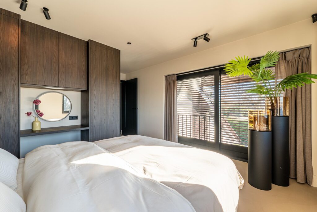 Het absolute pronkstuk van deze verdieping is de indrukwekkende master bedroom, een ware oase van rust en elegantie. Hier ontwaakt u met een panoramisch uitzicht over het water, een beleving die elke dag voelt als een luxe ontsnapping. Aangrenzend bevindt zich een exclusieve walk-in closet, volledig op maat ontworpen, en een en-suite badkamer die de ultieme ontspanning biedt.