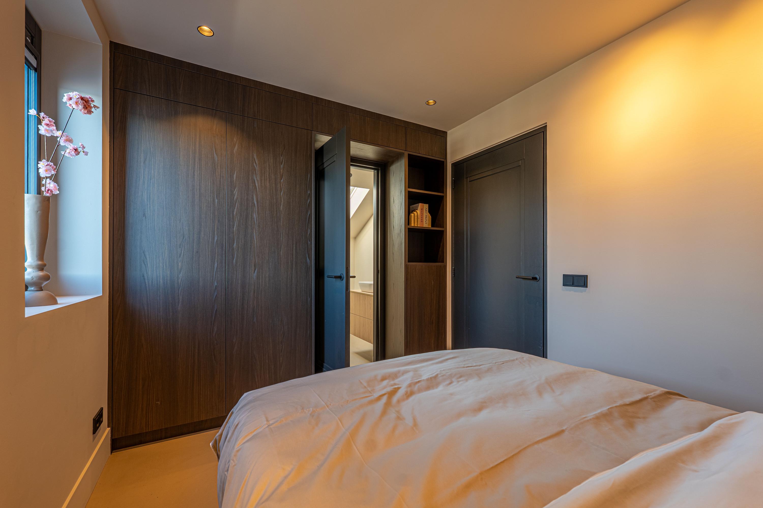 Het absolute pronkstuk van deze verdieping is de indrukwekkende master bedroom, een ware oase van rust en elegantie. Hier ontwaakt u met een panoramisch uitzicht over het water, een beleving die elke dag voelt als een luxe ontsnapping. Aangrenzend bevindt zich een exclusieve walk-in closet, volledig op maat ontworpen, en een en-suite badkamer die de ultieme ontspanning biedt.