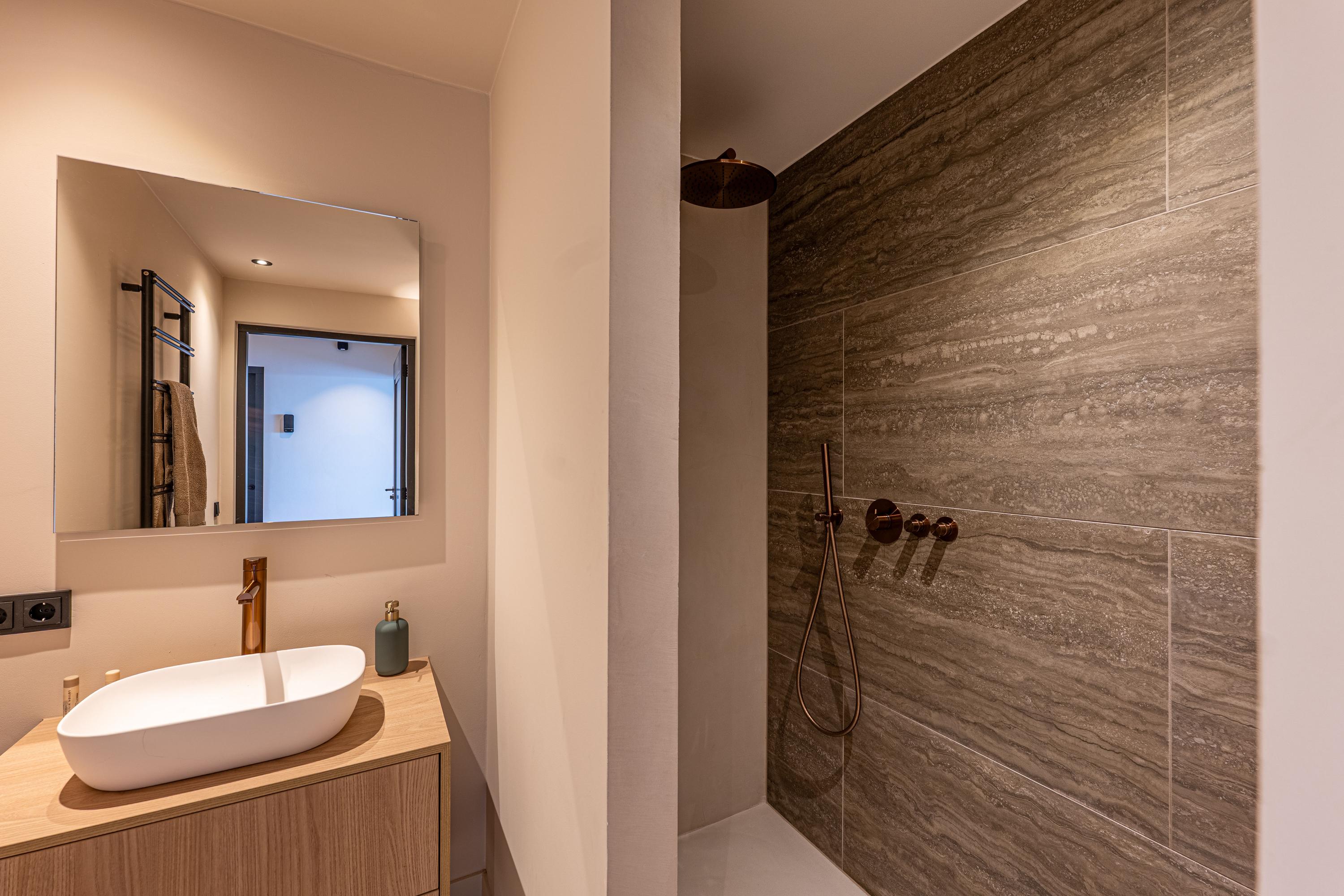 De doordachte indeling van deze verdieping biedt 1 separate badkamer en slaapkamer met en-suite badkamer. Beide badkamers zijn uitgerust met een stijlvolle inloopdouche, een elegante wastafel, een zwevend toilet en een elektrische designradiator. Hiermee is optimaal comfort en privacy gewaarborgd voor alle bewoners en gasten.