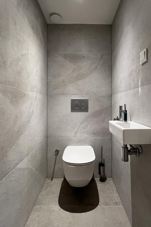toilet met fonteintje en de wasruimte met cv opstelling.