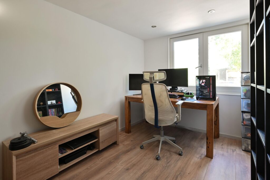 Aan de rechterzijde van de woning bevinden zich twee in grootte variërende slaapkamers.