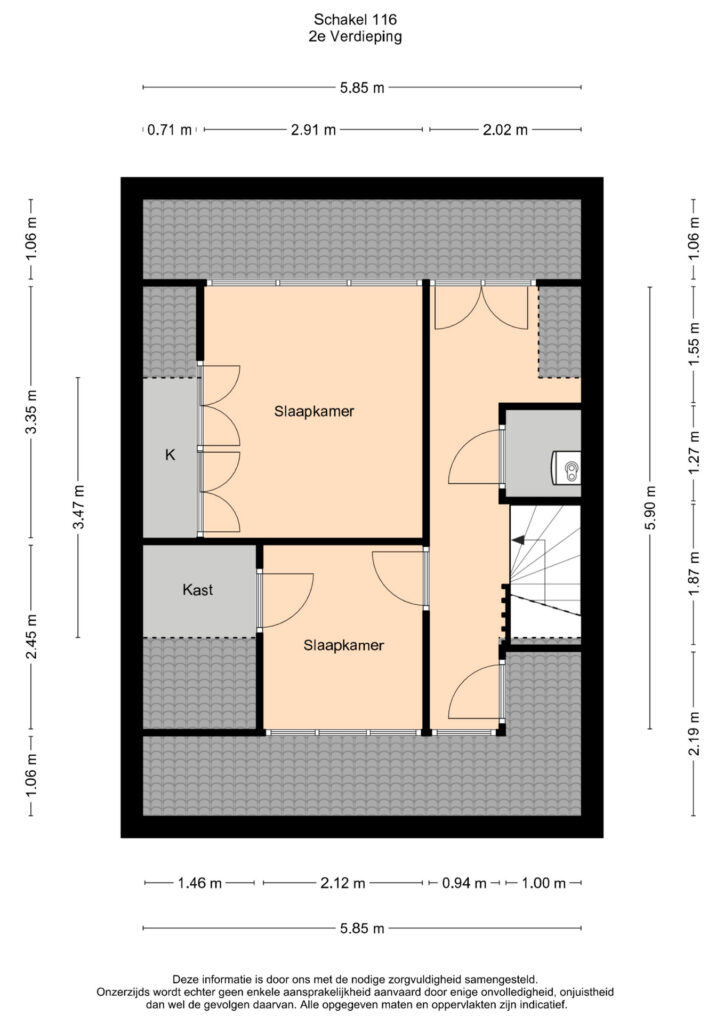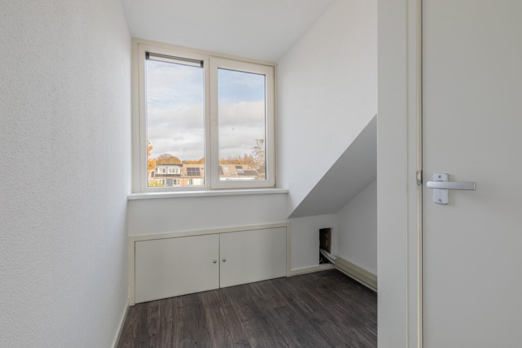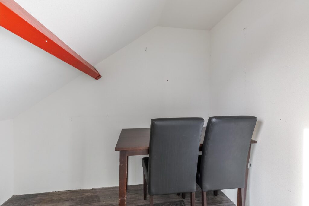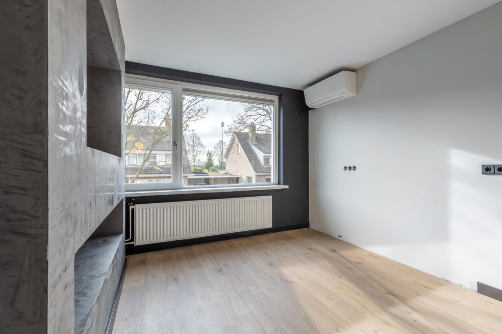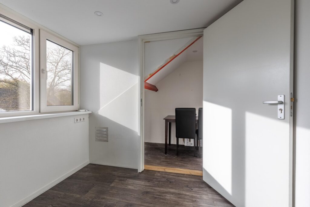 Vaste trap naar de volledig woonklaar gemaakte zolderverdieping. Hier bevindt zich een praktische overloop met ruimte voor de warmtepomp. Daarnaast zijn er twee slaapkamers, beide voorzien van een royaal dakkapel, waardoor opvallend veel licht en ruimte ontstaat.