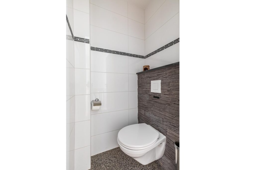 Binnenkomst in een ruime hal met meterkast, modern toilet met fontein en toegang tot de