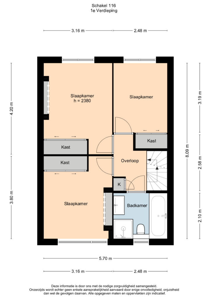 Overloop met toegang tot drie ruime slaapkamers, welke allemaal zijn voorzien van airconditioning voor optimaal wooncomfort.