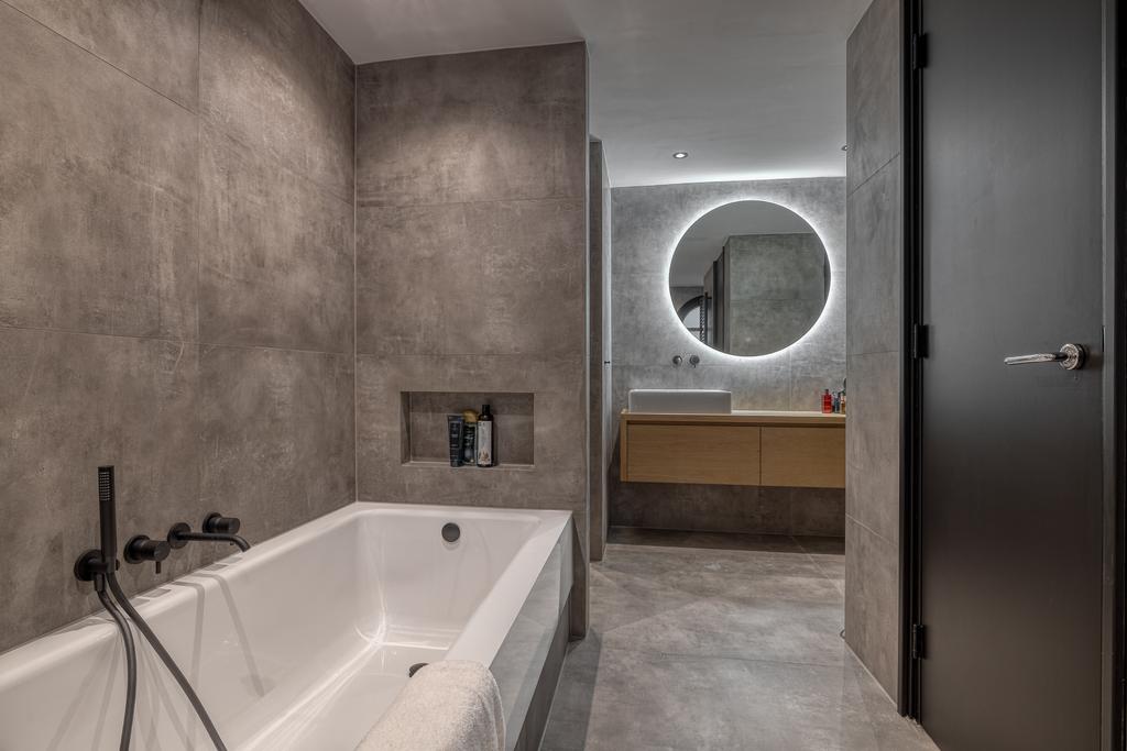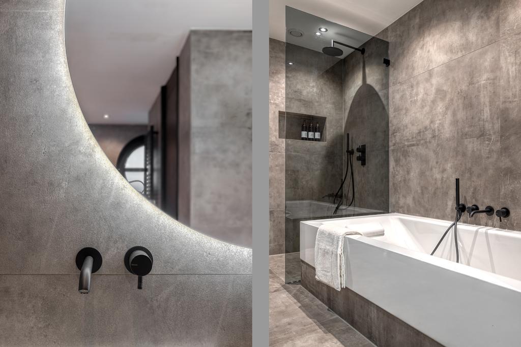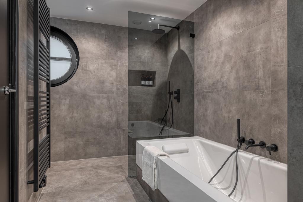 Het pareltje van het appartement is de luxe badkamer van "Badkamer Evolutie" welke is voorzien van een toilet, wastafel met groot houten meubel, handdoekradiator, inloopdouche en ligbad. Tevens vindt hier de aansluiting voor wasmachine en droger.