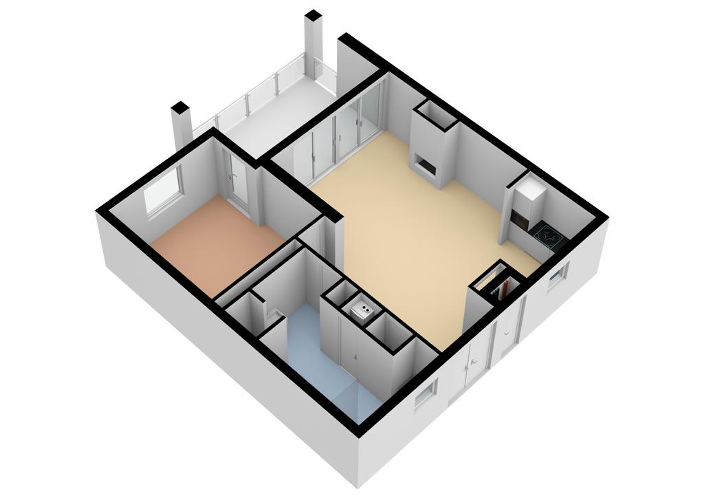 Via zowel de woonkamer als de slaapkamer bereikt u het heerlijke terras van maar liefst 14 m².