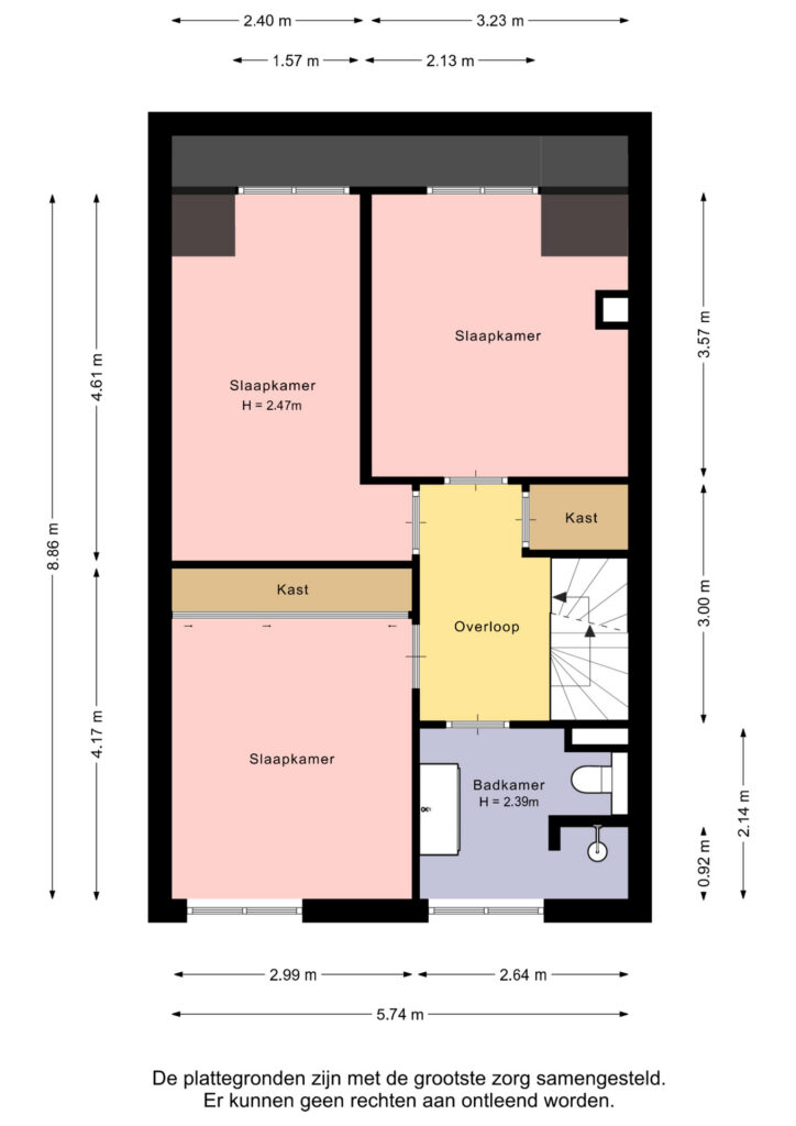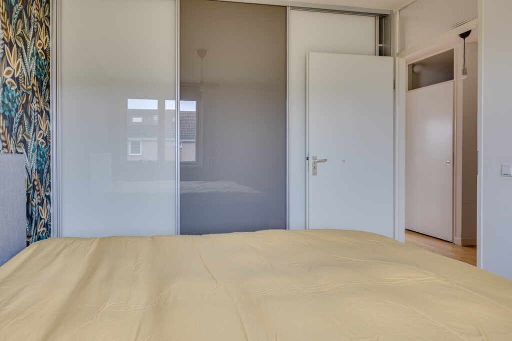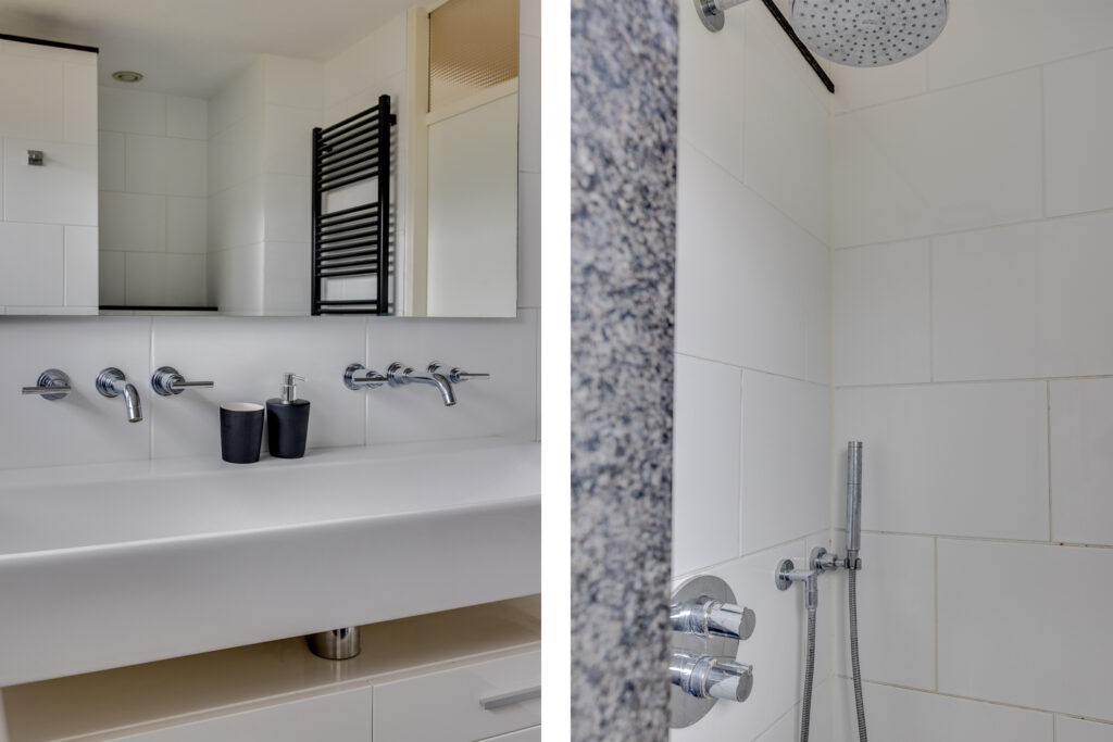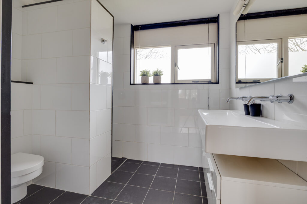 Overloop met handige bergkast. Drie in grootte variërende slaapkamers, waarvan de twee aan de achterzijde zijn voorzien van een dakkapel. Aan de voorzijde ligt de royale badkamer met (inloop)douche, wastafelmeubel met dubbele wastafel, zwevend toilet, designradiator en comfortabele vloerverwarming. Deze verdieping is afgewerkt met een laminaatvloer.