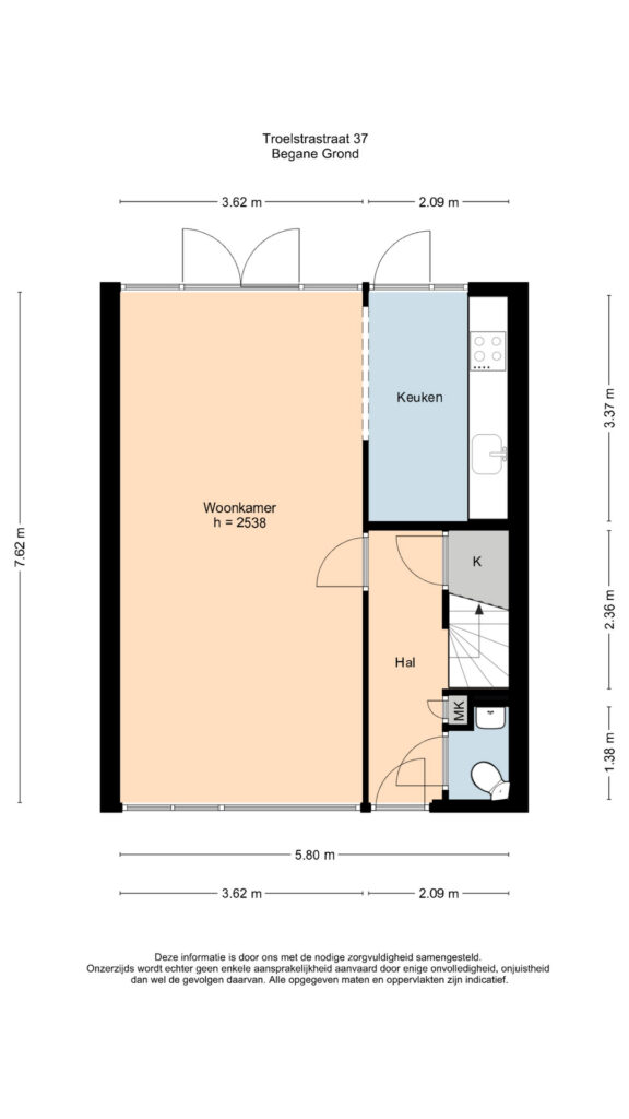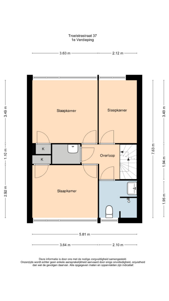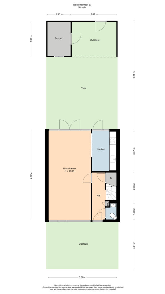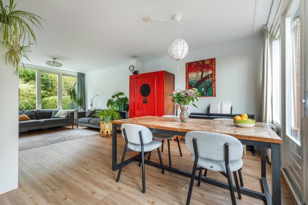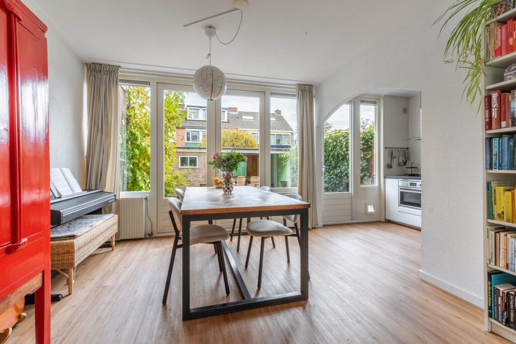 biedt een prachtige fietsroute langs de Vecht, richting Tienhoven en het buitengebied. Ook recreatiegebieden als de Maarsseveense Plassen en De Strook aan de Loosdrechtse Plassen liggen op korte afstand. De bereikbaarheid is uitstekend. Het station van Maarssen bereikt u in circa 10 minuten fietsen; vanaf daar bent u in ongeveer 7–10 minuten in Utrecht Centraal en in circa 30–35 minuten in Amsterdam Centraal. Diverse buslijnen doorkruisen de wijk en de A2 is snel en eenvoudig bereikbaar, waardoor zowel werk als ontspanning binnen handbereik zijn. Begane grond Middels de voortuin bereikt u de entree. In de hal vindt u de meterkast, trapopgang, toilet en een handige voorraad-/trapkast. De lichte woonkamer heeft dubbele openslaande deuren naar de achtertuin. Aan de achterzijde ligt tevens de moderne keuken welke is voorzien van diverse inbouwapparatuur, mét een eigen deur naar buiten. De diepe achtertuin beschikt achterin over een overdekt terras en een berging, ideaal voor extra bergruimte en fietsen. Tevens is de tuin bereikbaar middels een achterom. Eerste verdieping Overloop met toegang tot drie in grootte variërende slaapkamers en de badkamer met toilet, douche en wastafel. Ook is er een praktische berging aanwezig en zijn de twee grote kamers beide v.v. een vaste kast. Tweede verdieping Via de vaste trap bereikt u een ruime zolderkamer die als vierde slaapkamer of werkruimte kan worden gebruikt. Op de voorzolder bevindt zich de opstelling voor de wasmachine/droger en de technische installatie. Dankzij het daglicht en de open ruimte is dit een veelzijdige verdieping met volop indelingsmogelijkheden. Bijzonderheden: - goed onderhouden gezinswoning; - nabij het centrum van Maarssen én op loopafstand van de Vecht; - keuken vernieuwd in 2022; - woonoppervlak ca. 109 m² NEN gemeten; - 4 in grootte variërende slaapkamers; - zonnige tuin op zuidoosten; - tuin voorzien van berging, overkapping en achterom; - energielabel C geldig t/m 7 november 2035; - v.v. HR ++ glas; - oplevering in overleg.